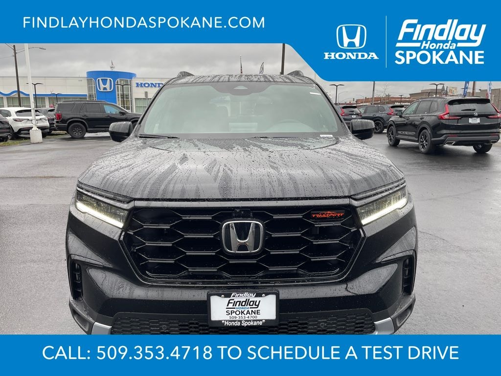 Friends, family, and neighbors have chosen us time and time again to be their dealer. Our simple and easy process, market aggressive pricing, and friendly knowledgeable staff are all reasons why. Come see for yourself why we are the top rated dealer in Spokane. Our process is designed to be easy, give you choices, and save you time. Our pressure free buying process allows you to see the quote you want. We give every customer multiple different monthly payments and down payments all on one sheet, so you can choose the one that best fits your budget. Come see how easy it is to purchase a car, truck, SUV from Findlay Honda Spokane. This Honda Pilot is equipped with these features: 3rd row seats: split-bench, 4-Wheel Disc Brakes, 4.167 Axle Ratio, 9 Speakers, ABS brakes, Adaptive Cruise Control: Adaptive Cruise Control (ACC) with Low-Speed Follow, Air Conditioning, Alloy wheels, AM/FM radio: SiriusXM, Apple CarPlay/Android Auto, Auto High-beam Headlights, Auto-dimming Rear-View mirror, Automatic temperature control, Blind Spot Information (BSI) System warning, Brake assist, Bumpers: body-color, Delay-off headlights, Driver door bin, Driver vanity mirror, Dual front impact airbags, Dual front side impact airbags, Durable Synthetic Leather Seat Trim, Electronic Stability Control, Emergency communication system: HondaLink Assist, Exterior Parking Camera Rear, Four wheel independent suspension, Front anti-roll bar, Front Bucket Seats, Front Center Armrest, Front dual zone A/C, Front fog lights, Front reading lights, Fully automatic headlights, Garage door transmitter: HomeLink, Heated door mirrors, Heated Front Bucket Seats, Heated front seats, Illuminated entry, Knee airbag, Lane departure: Lane Keeping Assist System (LKAS) active, Low tire pressure warning, Memory seat, Occupant sensing airbag, Outside temperature display, Overhead airbag, Overhead console, Panic alarm, Passenger door bin, Passenger vanity mirror, Power door mirrors, Power driver seat, Power Liftgate, Power moonroof, Power passenger seat, Power steering, Power windows, Radio data system, Radio: 245-Watt Audio System, Rear air conditioning, Rear anti-roll bar, Rear reading lights, Rear window defroster, Rear window wiper, Reclining 3rd row seat, Remote keyless entry, Security system, SiriusXM, Speed control, Speed-sensing steering, Speed-Sensitive Wipers, Split folding rear seat, Spoiler, Steering wheel mounted audio controls, Tachometer, Telescoping steering wheel, Tilt steering wheel, Traction control, Trip computer, Turn signal indicator mirrors, Variably intermittent wipers, and Wheels: 18" Shark Gray with Black Lug Nuts.