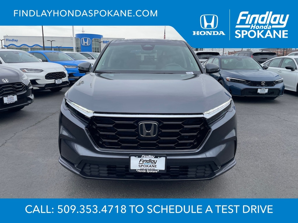 Friends, family, and neighbors have chosen us time and time again to be their dealer. Our simple and easy process, market aggressive pricing, and friendly knowledgeable staff are all reasons why. Come see for yourself why we are the top rated dealer in Spokane. Our process is designed to be easy, give you choices, and save you time. Our pressure free buying process allows you to see the quote you want. We give every customer multiple different monthly payments and down payments all on one sheet, so you can choose the one that best fits your budget. Come see how easy it is to purchase a car, truck, SUV from Findlay Honda Spokane. This Honda CR-V is equipped with these features: 4-Wheel Disc Brakes, 6 Speakers, ABS brakes, Adaptive Cruise Control: Adaptive Cruise Control (ACC) with Low-Speed Follow, Air Conditioning, Alloy wheels, AM/FM radio, Apple CarPlay/Android Auto, Auto High-beam Headlights, Automatic temperature control, Blind Spot Information (BSI) System warning, Brake assist, Bumpers: body-color, Cloth Seat Trim, Compass, Delay-off headlights, Driver door bin, Driver vanity mirror, Dual front impact airbags, Dual front side impact airbags, Electronic Stability Control, Exterior Parking Camera Rear, Four wheel independent suspension, Front anti-roll bar, Front Bucket Seats, Front Center Armrest, Front dual zone A/C, Front reading lights, Fully automatic headlights, Heated door mirrors, Heated Front Bucket Seats, Heated front seats, Illuminated entry, Knee airbag, Low tire pressure warning, Occupant sensing airbag, Outside temperature display, Overhead airbag, Overhead console, Panic alarm, Passenger door bin, Passenger vanity mirror, Power door mirrors, Power driver seat, Power moonroof, Power steering, Power windows, Radio data system, Radio: 240-Watt AM/FM Audio System, Rear anti-roll bar, Rear reading lights, Rear seat center armrest, Rear side impact airbag, Rear window defroster, Rear window wiper, Remote keyless entry, Security system, Speed control, Speed-sensing steering, Speed-Sensitive Wipers, Split folding rear seat, Spoiler, Steering wheel mounted audio controls, Tachometer, Telescoping steering wheel, Tilt steering wheel, Traction control, Trip computer, Turn signal indicator mirrors, Variably intermittent wipers, and Wheels: 18" Sparkle Silver.