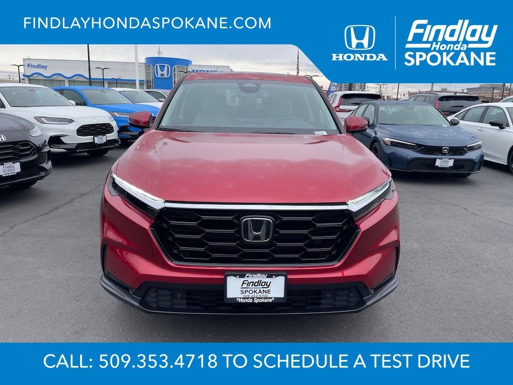 Friends, family, and neighbors have chosen us time and time again to be their dealer. Our simple and easy process, market aggressive pricing, and friendly knowledgeable staff are all reasons why. Come see for yourself why we are the top rated dealer in Spokane. Our process is designed to be easy, give you choices, and save you time. Our pressure free buying process allows you to see the quote you want. We give every customer multiple different monthly payments and down payments all on one sheet, so you can choose the one that best fits your budget. Come see how easy it is to purchase a car, truck, SUV from Findlay Honda Spokane. This Honda CR-V is equipped with these features: 4-Wheel Disc Brakes, 8 Speakers, ABS brakes, Adaptive Cruise Control: Adaptive Cruise Control (ACC) with Low-Speed Follow, Air Conditioning, Alloy wheels, AM/FM radio, Apple CarPlay/Android Auto, Auto High-beam Headlights, Auto-dimming Rear-View mirror, Automatic temperature control, Blind Spot Information (BSI) System warning, Brake assist, Bumpers: body-color, Compass, Delay-off headlights, Driver door bin, Driver vanity mirror, Dual front impact airbags, Dual front side impact airbags, Electronic Stability Control, Exterior Parking Camera Rear, Four wheel independent suspension, Front anti-roll bar, Front Bucket Seats, Front Center Armrest, Front dual zone A/C, Front reading lights, Fully automatic headlights, Heated door mirrors, Heated Front Bucket Seats, Heated front seats, Illuminated entry, Knee airbag, Leather Seat Trim, Leather Shift Knob, Leather steering wheel, Low tire pressure warning, Memory seat, Occupant sensing airbag, Outside temperature display, Overhead airbag, Overhead console, Panic alarm, Passenger door bin, Passenger vanity mirror, Power door mirrors, Power driver seat, Power Liftgate, Power moonroof, Power passenger seat, Power steering, Power windows, Radio data system, Radio: 320-Watt AM/FM Audio System, Rear anti-roll bar, Rear reading lights, Rear seat center armrest, Rear side impact airbag, Rear window defroster, Rear window wiper, Remote keyless entry, Security system, Speed control, Speed-sensing steering, Speed-Sensitive Wipers, Split folding rear seat, Spoiler, Steering wheel mounted audio controls, Tachometer, Telescoping steering wheel, Tilt steering wheel, Traction control, Trip computer, Turn signal indicator mirrors, Variably intermittent wipers, and Wheels: 18" Shark Grey.