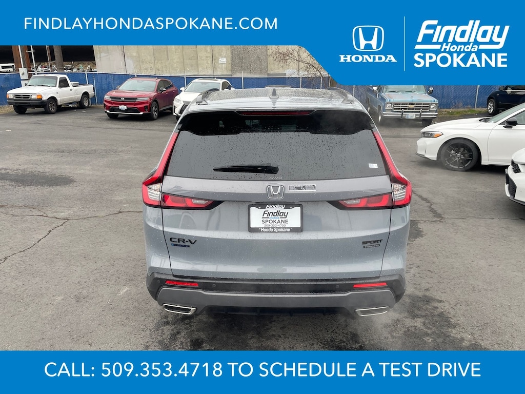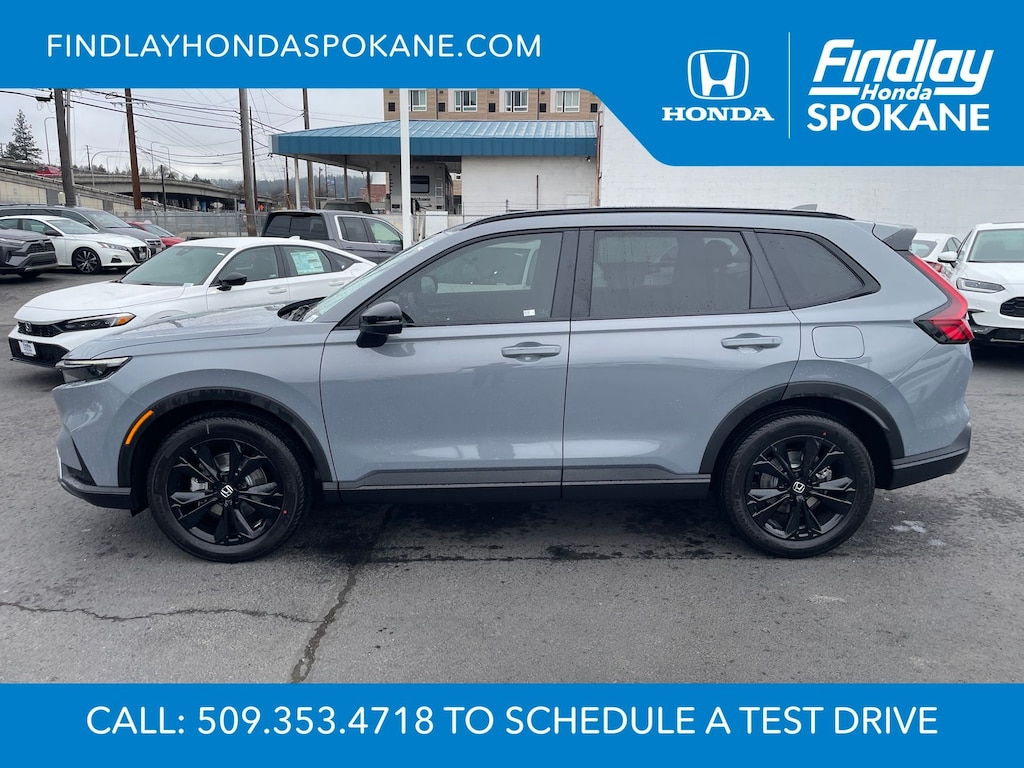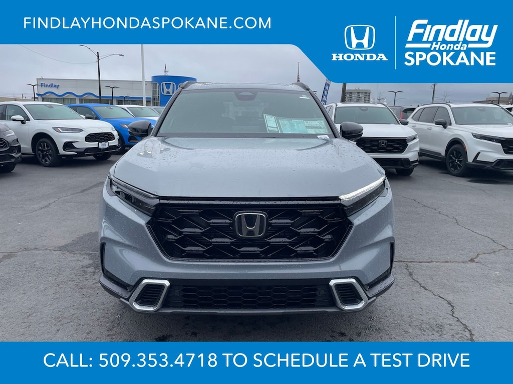 Friends, family, and neighbors have chosen us time and time again to be their dealer. Our simple and easy process, market aggressive pricing, and friendly knowledgeable staff are all reasons why. Come see for yourself why we are the top rated dealer in Spokane. Our process is designed to be easy, give you choices, and save you time. Our pressure free buying process allows you to see the quote you want. We give every customer multiple different monthly payments and down payments all on one sheet, so you can choose the one that best fits your budget. Come see how easy it is to purchase a car, truck, SUV from Findlay Honda Spokane. This Honda CR-V Hybrid is equipped with these features: 12 Speakers, 4-Wheel Disc Brakes, ABS brakes, Adaptive Cruise Control: Adaptive Cruise Control (ACC) with Low-Speed Follow, Air Conditioning, Alloy wheels, AM/FM radio, Apple CarPlay/Android Auto, Auto High-beam Headlights, Auto-dimming Rear-View mirror, Automatic temperature control, Blind Spot Information (BSI) System warning, Bose Premium Sound System, Brake assist, Bumpers: body-color, Compass, Delay-off headlights, Driver door bin, Driver vanity mirror, Dual front impact airbags, Dual front side impact airbags, Electronic Stability Control, Exterior Parking Camera Rear, Four wheel independent suspension, Front anti-roll bar, Front Bucket Seats, Front Center Armrest, Front dual zone A/C, Front reading lights, Fully automatic headlights, Heated door mirrors, Heated Front Bucket Seats, Heated front seats, Heated steering wheel, Illuminated entry, Knee airbag, Leather Seat Trim, Leather Shift Knob, Leather steering wheel, Low tire pressure warning, Memory seat, Navigation system: Google Maps, Occupant sensing airbag, Outside temperature display, Overhead airbag, Overhead console, Panic alarm, Passenger door bin, Passenger vanity mirror, Power door mirrors, Power driver seat, Power Liftgate, Power moonroof, Power passenger seat, Power steering, Power windows, Radio data system, Rain sensing wipers, Rear anti-roll bar, Rear reading lights, Rear seat center armrest, Rear side impact airbag, Rear window defroster, Rear window wiper, Remote keyless entry, Security system, Speed control, Speed-sensing steering, Speed-Sensitive Wipers, Split folding rear seat, Spoiler, Steering wheel mounted audio controls, Telescoping steering wheel, Tilt steering wheel, Traction control, Trip computer, Turn signal indicator mirrors, Variably intermittent wipers, and Wheels: 19" Berlina Black.