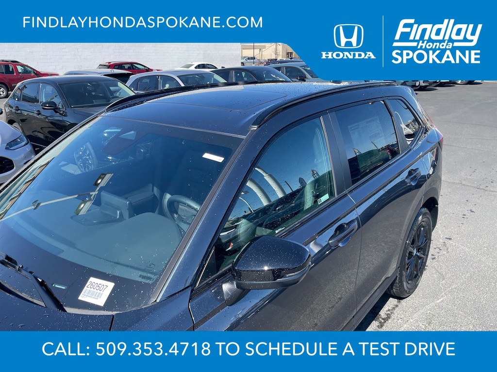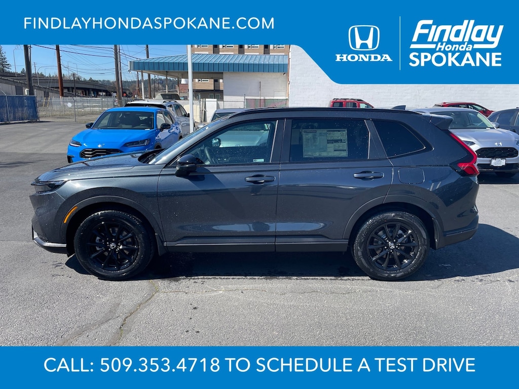 Friends, family, and neighbors have chosen us time and time again to be their dealer. Our simple and easy process, market aggressive pricing, and friendly knowledgeable staff are all reasons why. Come see for yourself why we are the top rated dealer in Spokane. Our process is designed to be easy, give you choices, and save you time. Our pressure free buying process allows you to see the quote you want. We give every customer multiple different monthly payments and down payments all on one sheet, so you can choose the one that best fits your budget. Come see how easy it is to purchase a car, truck, SUV from Findlay Honda Spokane. This Honda CR-V Hybrid is equipped with these features: 4-Wheel Disc Brakes, 8 Speakers, ABS brakes, Adaptive Cruise Control: Adaptive Cruise Control (ACC) with Low-Speed Follow, Air Conditioning, Alloy wheels, AM/FM radio, Apple CarPlay/Android Auto, Auto High-beam Headlights, Auto-dimming Rear-View mirror, Automatic temperature control, Blind Spot Information (BSI) System warning, Brake assist, Bumpers: body-color, Compass, Delay-off headlights, Driver door bin, Driver vanity mirror, Dual front impact airbags, Dual front side impact airbags, Electronic Stability Control, Exterior Parking Camera Rear, Four wheel independent suspension, Front anti-roll bar, Front Bucket Seats, Front Center Armrest, Front dual zone A/C, Front reading lights, Fully automatic headlights, Heated door mirrors, Heated Front Bucket Seats, Heated front seats, Illuminated entry, Knee airbag, Leather Seat Trim, Leather Shift Knob, Leather steering wheel, Low tire pressure warning, Memory seat, Occupant sensing airbag, Outside temperature display, Overhead airbag, Overhead console, Panic alarm, Passenger door bin, Passenger vanity mirror, Power door mirrors, Power driver seat, Power Liftgate, Power moonroof, Power passenger seat, Power steering, Power windows, Radio data system, Radio: 320-Watt AM/FM Audio System, Rear anti-roll bar, Rear reading lights, Rear seat center armrest, Rear side impact airbag, Rear window defroster, Rear window wiper, Remote keyless entry, Security system, Speed control, Speed-sensing steering, Speed-Sensitive Wipers, Split folding rear seat, Spoiler, Steering wheel mounted audio controls, Telescoping steering wheel, Tilt steering wheel, Traction control, Trip computer, Turn signal indicator mirrors, Variably intermittent wipers, and Wheels: 18" Berlina Black.