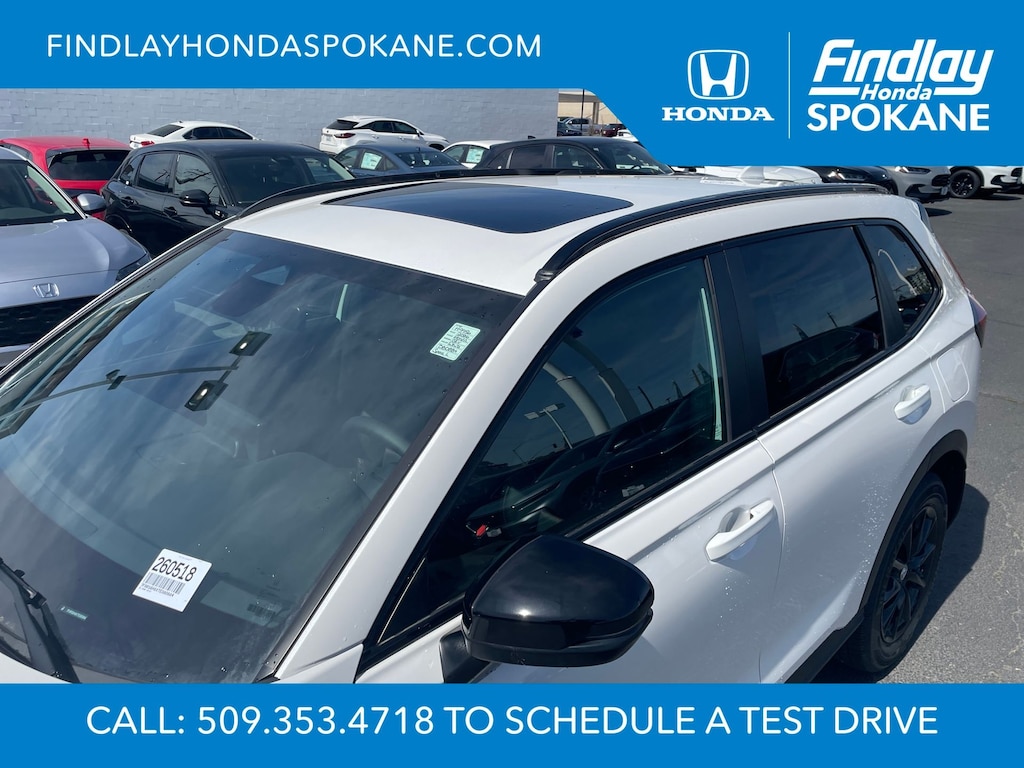 Friends, family, and neighbors have chosen us time and time again to be their dealer. Our simple and easy process, market aggressive pricing, and friendly knowledgeable staff are all reasons why. Come see for yourself why we are the top rated dealer in Spokane. Our process is designed to be easy, give you choices, and save you time. Our pressure free buying process allows you to see the quote you want. We give every customer multiple different monthly payments and down payments all on one sheet, so you can choose the one that best fits your budget. Come see how easy it is to purchase a car, truck, SUV from Findlay Honda Spokane. This Honda CR-V Hybrid is equipped with these features: 4-Wheel Disc Brakes, 8 Speakers, ABS brakes, Adaptive Cruise Control: Adaptive Cruise Control (ACC) with Low-Speed Follow, Air Conditioning, Alloy wheels, AM/FM radio, Apple CarPlay/Android Auto, Auto High-beam Headlights, Auto-dimming Rear-View mirror, Automatic temperature control, Blind Spot Information (BSI) System warning, Brake assist, Bumpers: body-color, Compass, Delay-off headlights, Driver door bin, Driver vanity mirror, Dual front impact airbags, Dual front side impact airbags, Electronic Stability Control, Exterior Parking Camera Rear, Four wheel independent suspension, Front anti-roll bar, Front Bucket Seats, Front Center Armrest, Front dual zone A/C, Front reading lights, Fully automatic headlights, Heated door mirrors, Heated Front Bucket Seats, Heated front seats, Illuminated entry, Knee airbag, Leather Seat Trim, Leather Shift Knob, Leather steering wheel, Low tire pressure warning, Memory seat, Occupant sensing airbag, Outside temperature display, Overhead airbag, Overhead console, Panic alarm, Passenger door bin, Passenger vanity mirror, Power door mirrors, Power driver seat, Power Liftgate, Power moonroof, Power passenger seat, Power steering, Power windows, Radio data system, Radio: 320-Watt AM/FM Audio System, Rear anti-roll bar, Rear reading lights, Rear seat center armrest, Rear side impact airbag, Rear window defroster, Rear window wiper, Remote keyless entry, Security system, Speed control, Speed-sensing steering, Speed-Sensitive Wipers, Split folding rear seat, Spoiler, Steering wheel mounted audio controls, Telescoping steering wheel, Tilt steering wheel, Traction control, Trip computer, Turn signal indicator mirrors, Variably intermittent wipers, and Wheels: 18" Berlina Black.