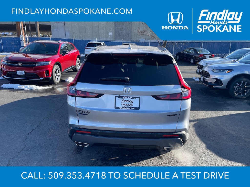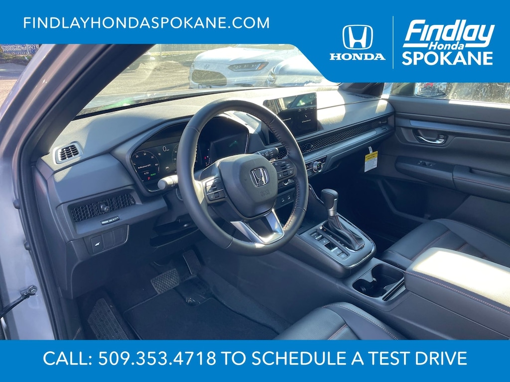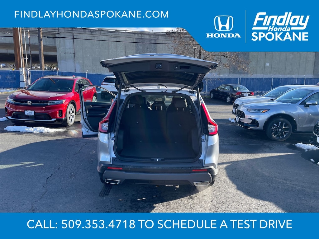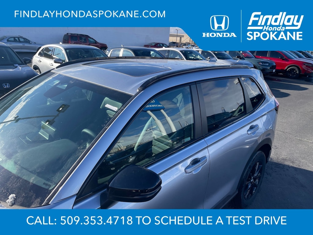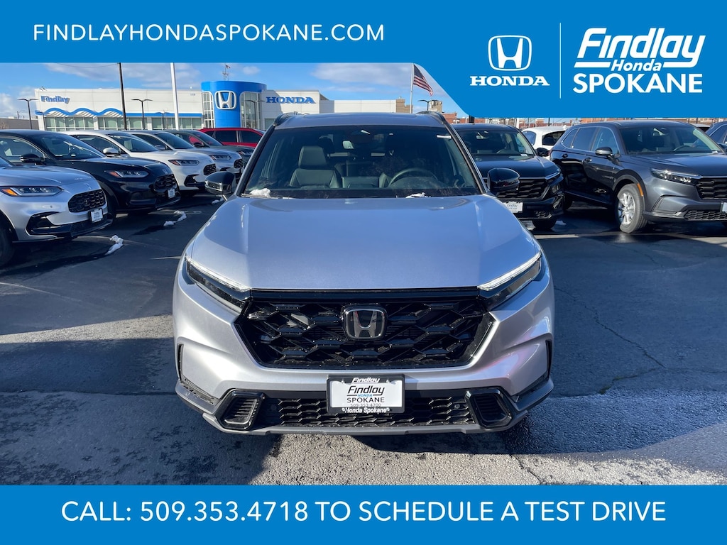Friends, family, and neighbors have chosen us time and time again to be their dealer. Our simple and easy process, market aggressive pricing, and friendly knowledgeable staff are all reasons why. Come see for yourself why we are the top rated dealer in Spokane. Our process is designed to be easy, give you choices, and save you time. Our pressure free buying process allows you to see the quote you want. We give every customer multiple different monthly payments and down payments all on one sheet, so you can choose the one that best fits your budget. Come see how easy it is to purchase a car, truck, SUV from Findlay Honda Spokane. This Honda CR-V Hybrid is equipped with these features: 4-Wheel Disc Brakes, 8 Speakers, ABS brakes, Adaptive Cruise Control: Adaptive Cruise Control (ACC) with Low-Speed Follow, Air Conditioning, Alloy wheels, AM/FM radio, Apple CarPlay/Android Auto, Auto High-beam Headlights, Auto-dimming Rear-View mirror, Automatic temperature control, Blind Spot Information (BSI) System warning, Brake assist, Bumpers: body-color, Compass, Delay-off headlights, Driver door bin, Driver vanity mirror, Dual front impact airbags, Dual front side impact airbags, Electronic Stability Control, Exterior Parking Camera Rear, Four wheel independent suspension, Front anti-roll bar, Front Bucket Seats, Front Center Armrest, Front dual zone A/C, Front reading lights, Fully automatic headlights, Heated door mirrors, Heated Front Bucket Seats, Heated front seats, Illuminated entry, Knee airbag, Leather Seat Trim, Leather Shift Knob, Leather steering wheel, Low tire pressure warning, Memory seat, Occupant sensing airbag, Outside temperature display, Overhead airbag, Overhead console, Panic alarm, Passenger door bin, Passenger vanity mirror, Power door mirrors, Power driver seat, Power Liftgate, Power moonroof, Power passenger seat, Power steering, Power windows, Radio data system, Radio: 320-Watt AM/FM Audio System, Rear anti-roll bar, Rear reading lights, Rear seat center armrest, Rear side impact airbag, Rear window defroster, Rear window wiper, Remote keyless entry, Security system, Speed control, Speed-sensing steering, Speed-Sensitive Wipers, Split folding rear seat, Spoiler, Steering wheel mounted audio controls, Telescoping steering wheel, Tilt steering wheel, Traction control, Trip computer, Turn signal indicator mirrors, Variably intermittent wipers, and Wheels: 18" Berlina Black.