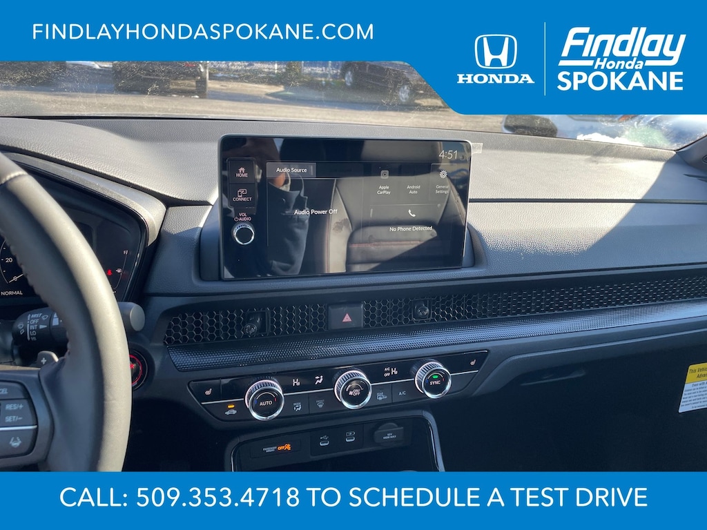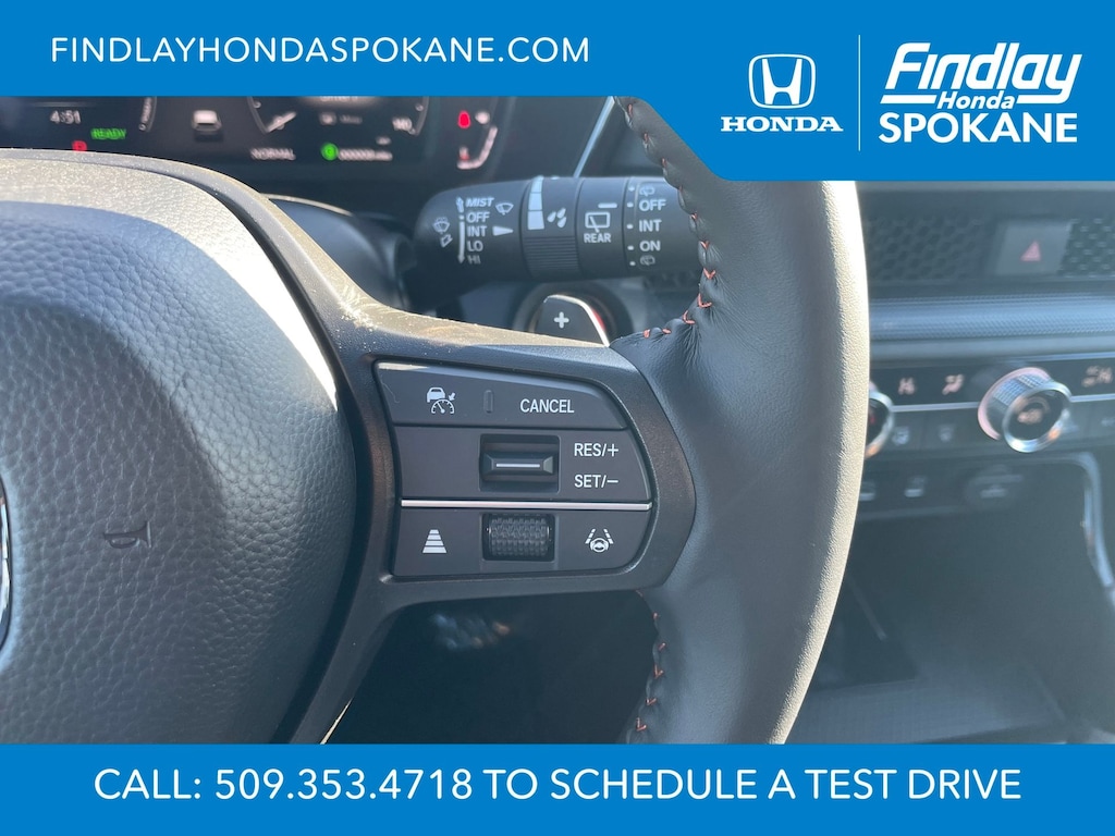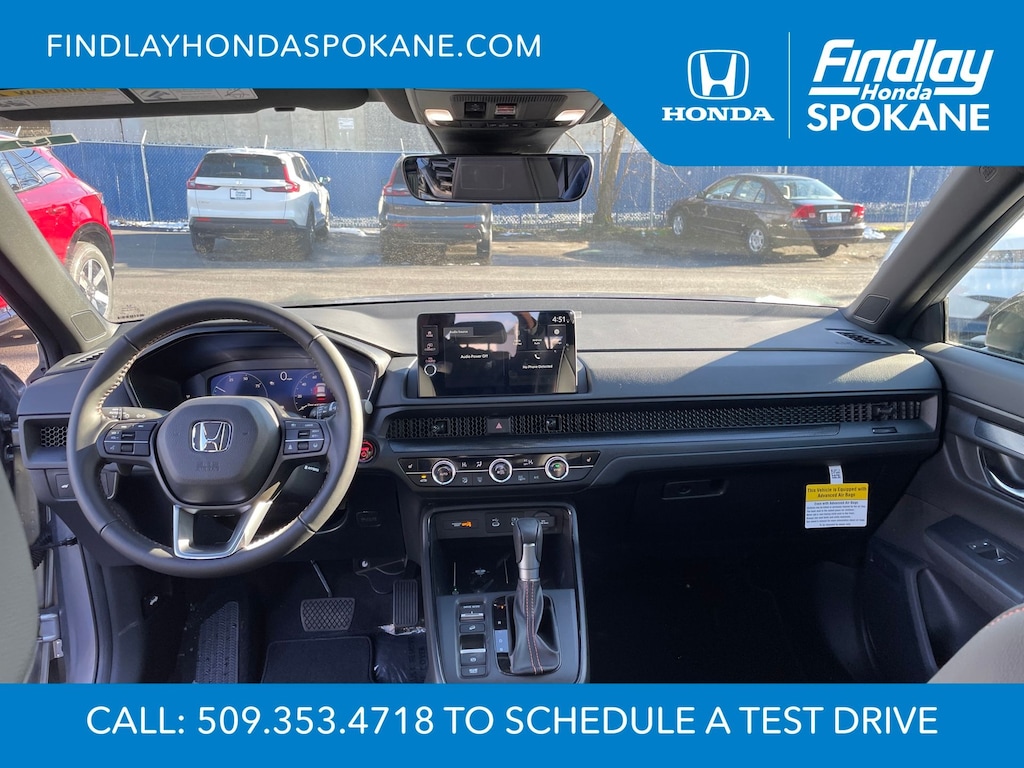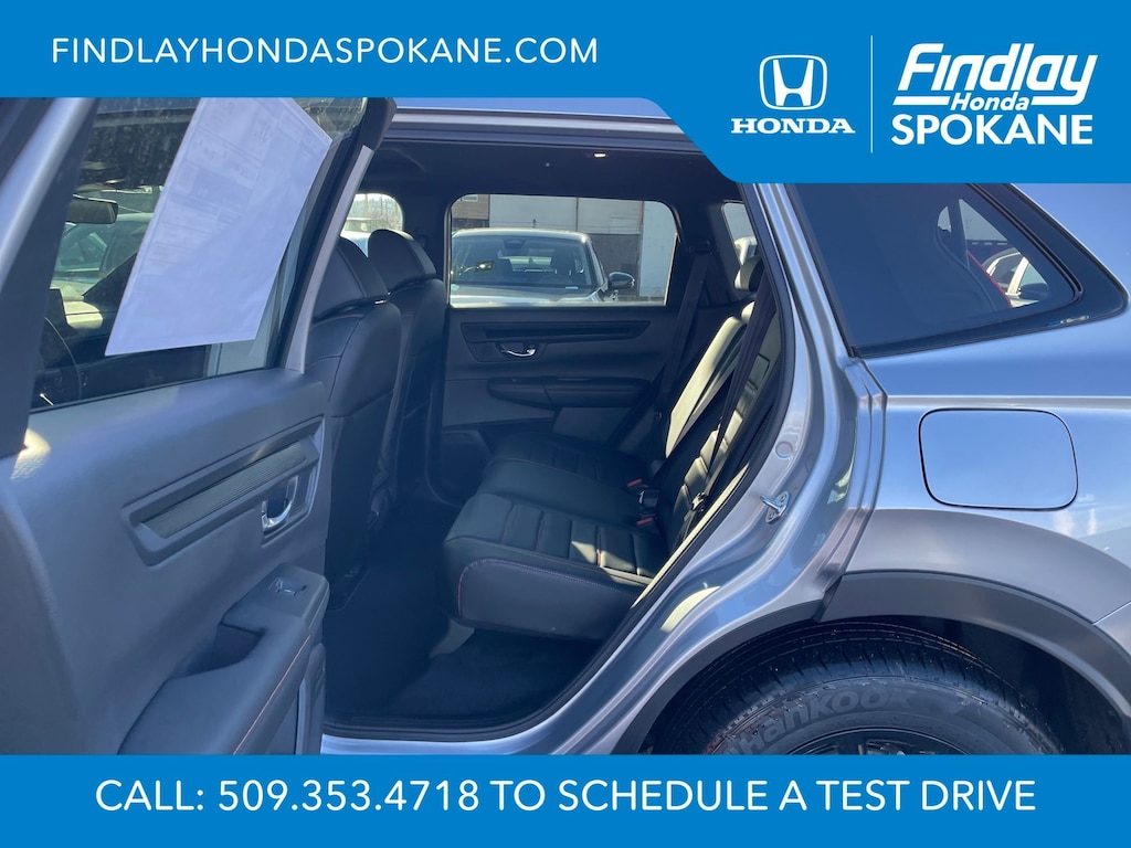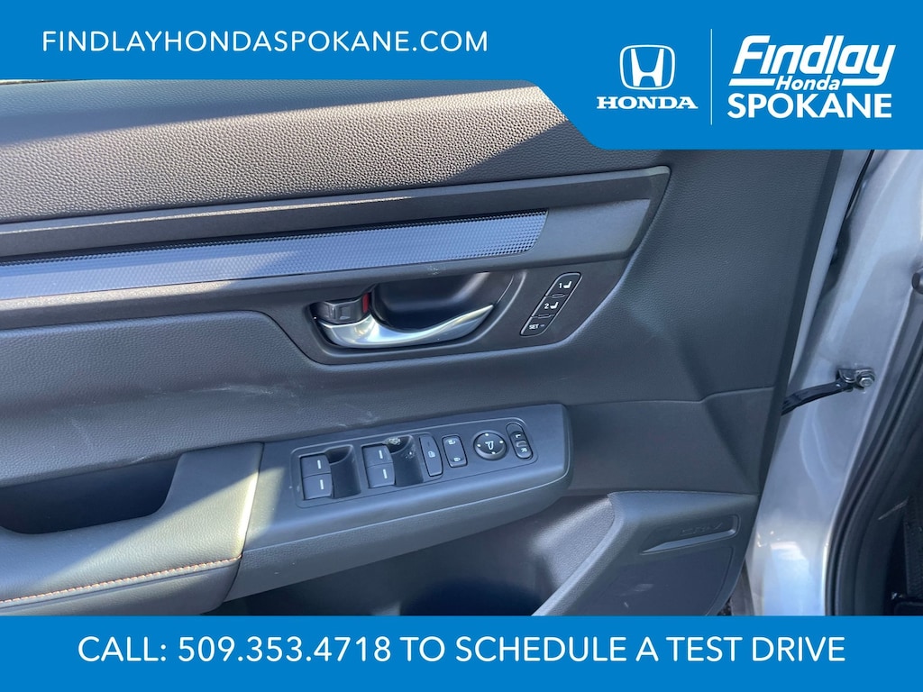 Friends, family, and neighbors have chosen us time and time again to be their dealer. Our simple and easy process, market aggressive pricing, and friendly knowledgeable staff are all reasons why. Come see for yourself why we are the top rated dealer in Spokane. Our process is designed to be easy, give you choices, and save you time. Our pressure free buying process allows you to see the quote you want. We give every customer multiple different monthly payments and down payments all on one sheet, so you can choose the one that best fits your budget. Come see how easy it is to purchase a car, truck, SUV from Findlay Honda Spokane. This Honda CR-V Hybrid is equipped with these features: 4-Wheel Disc Brakes, 8 Speakers, ABS brakes, Adaptive Cruise Control: Adaptive Cruise Control (ACC) with Low-Speed Follow, Air Conditioning, Alloy wheels, AM/FM radio, Apple CarPlay/Android Auto, Auto High-beam Headlights, Auto-dimming Rear-View mirror, Automatic temperature control, Blind Spot Information (BSI) System warning, Brake assist, Bumpers: body-color, Compass, Delay-off headlights, Driver door bin, Driver vanity mirror, Dual front impact airbags, Dual front side impact airbags, Electronic Stability Control, Exterior Parking Camera Rear, Four wheel independent suspension, Front anti-roll bar, Front Bucket Seats, Front Center Armrest, Front dual zone A/C, Front reading lights, Fully automatic headlights, Heated door mirrors, Heated Front Bucket Seats, Heated front seats, Illuminated entry, Knee airbag, Leather Seat Trim, Leather Shift Knob, Leather steering wheel, Low tire pressure warning, Memory seat, Occupant sensing airbag, Outside temperature display, Overhead airbag, Overhead console, Panic alarm, Passenger door bin, Passenger vanity mirror, Power door mirrors, Power driver seat, Power Liftgate, Power moonroof, Power passenger seat, Power steering, Power windows, Radio data system, Radio: 320-Watt AM/FM Audio System, Rear anti-roll bar, Rear reading lights, Rear seat center armrest, Rear side impact airbag, Rear window defroster, Rear window wiper, Remote keyless entry, Security system, Speed control, Speed-sensing steering, Speed-Sensitive Wipers, Split folding rear seat, Spoiler, Steering wheel mounted audio controls, Telescoping steering wheel, Tilt steering wheel, Traction control, Trip computer, Turn signal indicator mirrors, Variably intermittent wipers, and Wheels: 18" Berlina Black.