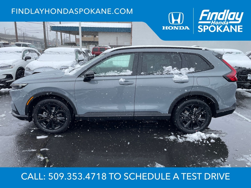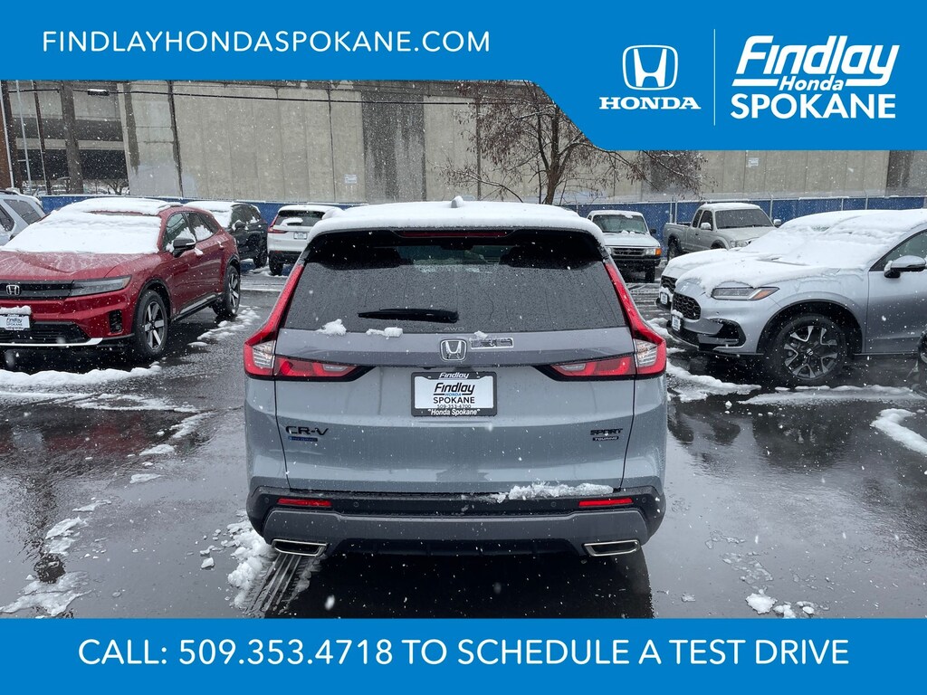 Friends, family, and neighbors have chosen us time and time again to be their dealer. Our simple and easy process, market aggressive pricing, and friendly knowledgeable staff are all reasons why. Come see for yourself why we are the top rated dealer in Spokane. Our process is designed to be easy, give you choices, and save you time. Our pressure free buying process allows you to see the quote you want. We give every customer multiple different monthly payments and down payments all on one sheet, so you can choose the one that best fits your budget. Come see how easy it is to purchase a car, truck, SUV from Findlay Honda Spokane. This Honda CR-V Hybrid is equipped with these features: 12 Speakers, 4-Wheel Disc Brakes, ABS brakes, Adaptive Cruise Control: Adaptive Cruise Control (ACC) with Low-Speed Follow, Air Conditioning, Alloy wheels, AM/FM radio, Apple CarPlay/Android Auto, Auto High-beam Headlights, Auto-dimming Rear-View mirror, Automatic temperature control, Blind Spot Information (BSI) System warning, Bose Premium Sound System, Brake assist, Bumpers: body-color, Compass, Delay-off headlights, Driver door bin, Driver vanity mirror, Dual front impact airbags, Dual front side impact airbags, Electronic Stability Control, Exterior Parking Camera Rear, Four wheel independent suspension, Front anti-roll bar, Front Bucket Seats, Front Center Armrest, Front dual zone A/C, Front reading lights, Fully automatic headlights, Heated door mirrors, Heated Front Bucket Seats, Heated front seats, Heated steering wheel, Illuminated entry, Knee airbag, Leather Seat Trim, Leather Shift Knob, Leather steering wheel, Low tire pressure warning, Memory seat, Navigation system: Google Maps, Occupant sensing airbag, Outside temperature display, Overhead airbag, Overhead console, Panic alarm, Passenger door bin, Passenger vanity mirror, Power door mirrors, Power driver seat, Power Liftgate, Power moonroof, Power passenger seat, Power steering, Power windows, Radio data system, Rain sensing wipers, Rear anti-roll bar, Rear reading lights, Rear seat center armrest, Rear side impact airbag, Rear window defroster, Rear window wiper, Remote keyless entry, Security system, Speed control, Speed-sensing steering, Speed-Sensitive Wipers, Split folding rear seat, Spoiler, Steering wheel mounted audio controls, Telescoping steering wheel, Tilt steering wheel, Traction control, Trip computer, Turn signal indicator mirrors, Variably intermittent wipers, and Wheels: 19" Berlina Black.