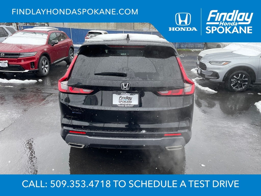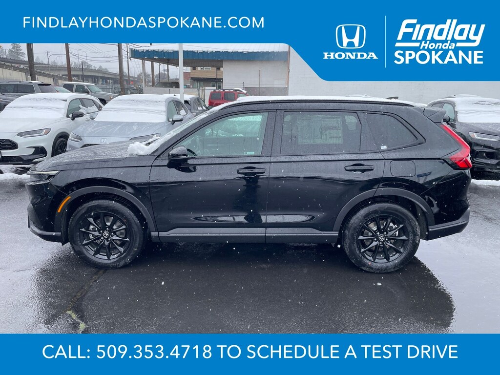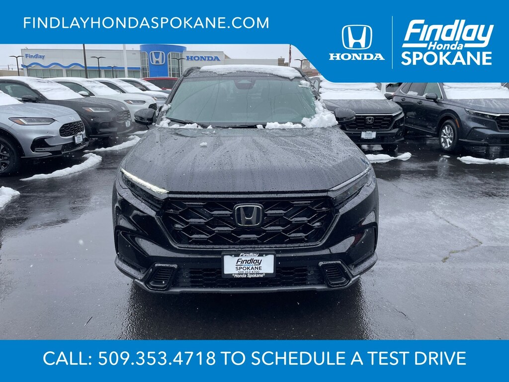 Friends, family, and neighbors have chosen us time and time again to be their dealer. Our simple and easy process, market aggressive pricing, and friendly knowledgeable staff are all reasons why. Come see for yourself why we are the top rated dealer in Spokane. Our process is designed to be easy, give you choices, and save you time. Our pressure free buying process allows you to see the quote you want. We give every customer multiple different monthly payments and down payments all on one sheet, so you can choose the one that best fits your budget. Come see how easy it is to purchase a car, truck, SUV from Findlay Honda Spokane. This Honda CR-V Hybrid is equipped with these features: 4-Wheel Disc Brakes, 8 Speakers, ABS brakes, Adaptive Cruise Control: Adaptive Cruise Control (ACC) with Low-Speed Follow, Air Conditioning, Alloy wheels, AM/FM radio, Apple CarPlay/Android Auto, Auto High-beam Headlights, Auto-dimming Rear-View mirror, Automatic temperature control, Blind Spot Information (BSI) System warning, Brake assist, Bumpers: body-color, Compass, Delay-off headlights, Driver door bin, Driver vanity mirror, Dual front impact airbags, Dual front side impact airbags, Electronic Stability Control, Exterior Parking Camera Rear, Four wheel independent suspension, Front anti-roll bar, Front Bucket Seats, Front Center Armrest, Front dual zone A/C, Front reading lights, Fully automatic headlights, Heated door mirrors, Heated Front Bucket Seats, Heated front seats, Illuminated entry, Knee airbag, Leather Seat Trim, Leather Shift Knob, Leather steering wheel, Low tire pressure warning, Memory seat, Occupant sensing airbag, Outside temperature display, Overhead airbag, Overhead console, Panic alarm, Passenger door bin, Passenger vanity mirror, Power door mirrors, Power driver seat, Power Liftgate, Power moonroof, Power passenger seat, Power steering, Power windows, Radio data system, Radio: 320-Watt AM/FM Audio System, Rear anti-roll bar, Rear reading lights, Rear seat center armrest, Rear side impact airbag, Rear window defroster, Rear window wiper, Remote keyless entry, Security system, Speed control, Speed-sensing steering, Speed-Sensitive Wipers, Split folding rear seat, Spoiler, Steering wheel mounted audio controls, Telescoping steering wheel, Tilt steering wheel, Traction control, Trip computer, Turn signal indicator mirrors, Variably intermittent wipers, and Wheels: 18" Berlina Black.