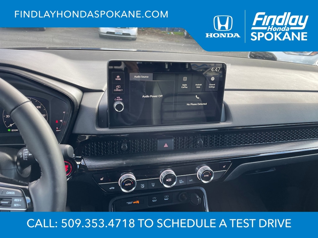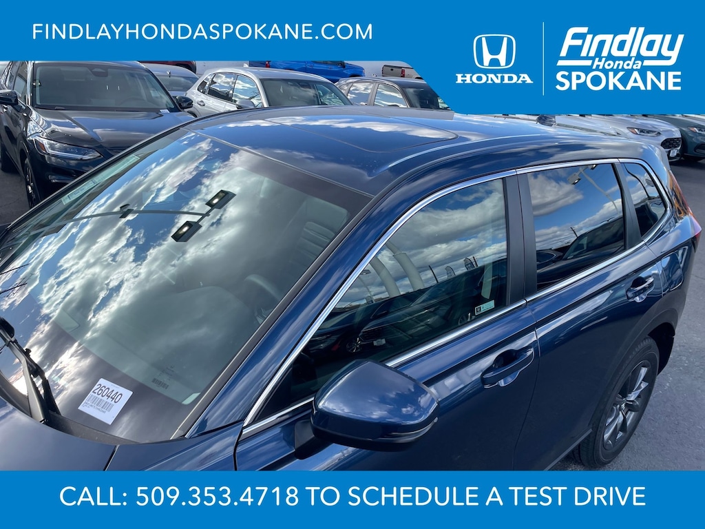 Friends, family, and neighbors have chosen us time and time again to be their dealer. Our simple and easy process, market aggressive pricing, and friendly knowledgeable staff are all reasons why. Come see for yourself why we are the top rated dealer in Spokane. Our process is designed to be easy, give you choices, and save you time. Our pressure free buying process allows you to see the quote you want. We give every customer multiple different monthly payments and down payments all on one sheet, so you can choose the one that best fits your budget. Come see how easy it is to purchase a car, truck, SUV from Findlay Honda Spokane. This Honda CR-V is equipped with these features: 4-Wheel Disc Brakes, 8 Speakers, ABS brakes, Adaptive Cruise Control: Adaptive Cruise Control (ACC) with Low-Speed Follow, Air Conditioning, Alloy wheels, AM/FM radio, Apple CarPlay/Android Auto, Auto High-beam Headlights, Auto-dimming Rear-View mirror, Automatic temperature control, Blind Spot Information (BSI) System warning, Brake assist, Bumpers: body-color, Compass, Delay-off headlights, Driver door bin, Driver vanity mirror, Dual front impact airbags, Dual front side impact airbags, Electronic Stability Control, Exterior Parking Camera Rear, Four wheel independent suspension, Front anti-roll bar, Front Bucket Seats, Front Center Armrest, Front dual zone A/C, Front reading lights, Fully automatic headlights, Heated door mirrors, Heated Front Bucket Seats, Heated front seats, Illuminated entry, Knee airbag, Leather Seat Trim, Leather Shift Knob, Leather steering wheel, Low tire pressure warning, Memory seat, Occupant sensing airbag, Outside temperature display, Overhead airbag, Overhead console, Panic alarm, Passenger door bin, Passenger vanity mirror, Power door mirrors, Power driver seat, Power Liftgate, Power moonroof, Power passenger seat, Power steering, Power windows, Radio data system, Radio: 320-Watt AM/FM Audio System, Rear anti-roll bar, Rear reading lights, Rear seat center armrest, Rear side impact airbag, Rear window defroster, Rear window wiper, Remote keyless entry, Security system, Speed control, Speed-sensing steering, Speed-Sensitive Wipers, Split folding rear seat, Spoiler, Steering wheel mounted audio controls, Tachometer, Telescoping steering wheel, Tilt steering wheel, Traction control, Trip computer, Turn signal indicator mirrors, Variably intermittent wipers, and Wheels: 18" Shark Grey.