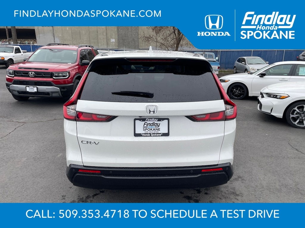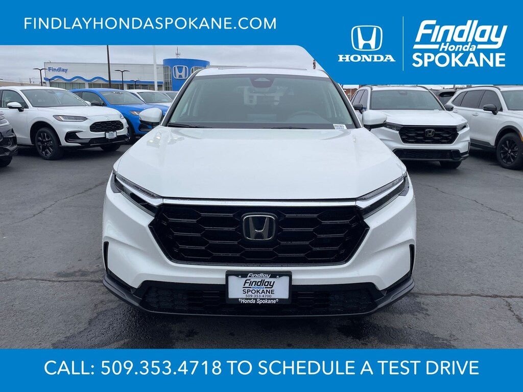 Friends, family, and neighbors have chosen us time and time again to be their dealer. Our simple and easy process, market aggressive pricing, and friendly knowledgeable staff are all reasons why. Come see for yourself why we are the top rated dealer in Spokane. Our process is designed to be easy, give you choices, and save you time. Our pressure free buying process allows you to see the quote you want. We give every customer multiple different monthly payments and down payments all on one sheet, so you can choose the one that best fits your budget. Come see how easy it is to purchase a car, truck, SUV from Findlay Honda Spokane. This Honda CR-V is equipped with these features: 4-Wheel Disc Brakes, 8 Speakers, ABS brakes, Adaptive Cruise Control: Adaptive Cruise Control (ACC) with Low-Speed Follow, Air Conditioning, Alloy wheels, AM/FM radio, Apple CarPlay/Android Auto, Auto High-beam Headlights, Auto-dimming Rear-View mirror, Automatic temperature control, Blind Spot Information (BSI) System warning, Brake assist, Bumpers: body-color, Compass, Delay-off headlights, Driver door bin, Driver vanity mirror, Dual front impact airbags, Dual front side impact airbags, Electronic Stability Control, Exterior Parking Camera Rear, Four wheel independent suspension, Front anti-roll bar, Front Bucket Seats, Front Center Armrest, Front dual zone A/C, Front reading lights, Fully automatic headlights, Heated door mirrors, Heated Front Bucket Seats, Heated front seats, Illuminated entry, Knee airbag, Leather Seat Trim, Leather Shift Knob, Leather steering wheel, Low tire pressure warning, Memory seat, Occupant sensing airbag, Outside temperature display, Overhead airbag, Overhead console, Panic alarm, Passenger door bin, Passenger vanity mirror, Power door mirrors, Power driver seat, Power Liftgate, Power moonroof, Power passenger seat, Power steering, Power windows, Radio data system, Radio: 320-Watt AM/FM Audio System, Rear anti-roll bar, Rear reading lights, Rear seat center armrest, Rear side impact airbag, Rear window defroster, Rear window wiper, Remote keyless entry, Security system, Speed control, Speed-sensing steering, Speed-Sensitive Wipers, Split folding rear seat, Spoiler, Steering wheel mounted audio controls, Tachometer, Telescoping steering wheel, Tilt steering wheel, Traction control, Trip computer, Turn signal indicator mirrors, Variably intermittent wipers, and Wheels: 18" Shark Grey.