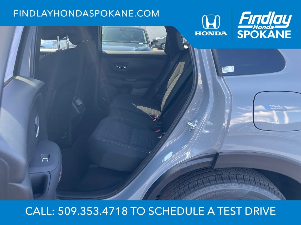 Friends, family, and neighbors have chosen us time and time again to be their dealer. Our simple and easy process, market aggressive pricing, and friendly knowledgeable staff are all reasons why. Come see for yourself why we are the top rated dealer in Spokane. Our process is designed to be easy, give you choices, and save you time. Our pressure free buying process allows you to see the quote you want. We give every customer multiple different monthly payments and down payments all on one sheet, so you can choose the one that best fits your budget. Come see how easy it is to purchase a car, truck, SUV from Findlay Honda Spokane. This Honda HR-V is equipped with these features: 4-Wheel Disc Brakes, 6 Speakers, ABS brakes, Adaptive Cruise Control: Adaptive Cruise Control (ACC) with Low-Speed Follow, Air Conditioning, Alloy wheels, AM/FM radio, Apple CarPlay/Android Auto, Auto High-beam Headlights, Automatic temperature control, Blind Spot Information (BSI) System warning, Brake assist, Bumpers: body-color, Cloth Seat Trim, Compass, Delay-off headlights, Driver door bin, Driver vanity mirror, Dual front impact airbags, Dual front side impact airbags, Electronic Stability Control, Exterior Parking Camera Rear, Four wheel independent suspension, Front anti-roll bar, Front Bucket Seats, Front Center Armrest, Front reading lights, Fully automatic headlights, Heated door mirrors, Heated Front Bucket Seats, Heated front seats, Illuminated entry, Knee airbag, Low tire pressure warning, Occupant sensing airbag, Outside temperature display, Overhead airbag, Panic alarm, Passenger door bin, Passenger vanity mirror, Power door mirrors, Power steering, Power windows, Radio data system, Radio: 180-Watt Audio System with 6 Speakers, Rear anti-roll bar, Rear reading lights, Rear side impact airbag, Rear window defroster, Rear window wiper, Remote keyless entry, Security system, Speed control, Speed-sensing steering, Split folding rear seat, Spoiler, Steering wheel mounted audio controls, Tachometer, Telescoping steering wheel, Tilt steering wheel, Traction control, Trip computer, Turn signal indicator mirrors, Variably intermittent wipers, and Wheels: 18" Gloss Black Alloy.