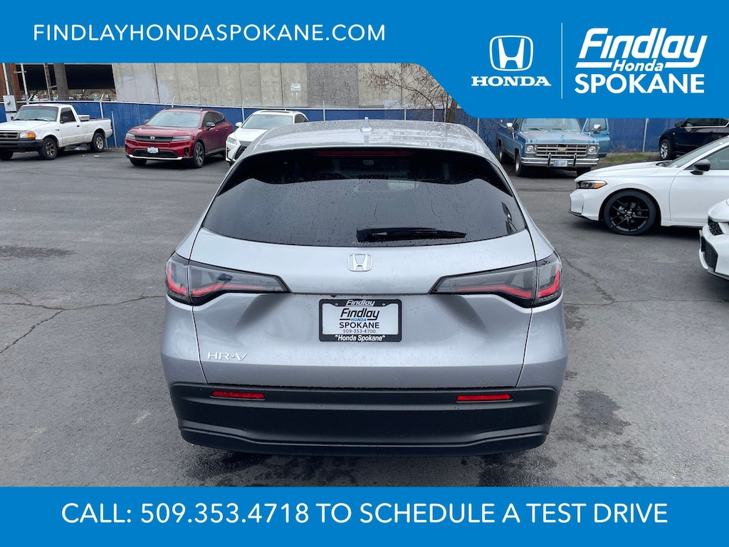 Friends, family, and neighbors have chosen us time and time again to be their dealer. Our simple and easy process, market aggressive pricing, and friendly knowledgeable staff are all reasons why. Come see for yourself why we are the top rated dealer in Spokane. Our process is designed to be easy, give you choices, and save you time. Our pressure free buying process allows you to see the quote you want. We give every customer multiple different monthly payments and down payments all on one sheet, so you can choose the one that best fits your budget. Come see how easy it is to purchase a car, truck, SUV from Findlay Honda Spokane. This Honda HR-V is equipped with these features: 4 Speakers, 4-Wheel Disc Brakes, ABS brakes, Adaptive Cruise Control: Adaptive Cruise Control (ACC) with Low-Speed Follow, Air Conditioning, Alloy wheels, AM/FM radio, Apple CarPlay/Android Auto, Auto High-beam Headlights, Automatic temperature control, Brake assist, Bumpers: body-color, Cloth Seat Trim, Compass, Delay-off headlights, Driver door bin, Driver vanity mirror, Dual front impact airbags, Dual front side impact airbags, Electronic Stability Control, Exterior Parking Camera Rear, Four wheel independent suspension, Front anti-roll bar, Front Bucket Seats, Front Center Armrest, Front reading lights, Fully automatic headlights, Illuminated entry, Knee airbag, Low tire pressure warning, Occupant sensing airbag, Outside temperature display, Overhead airbag, Panic alarm, Passenger door bin, Passenger vanity mirror, Power door mirrors, Power steering, Power windows, Radio data system, Radio: 180-Watt Audio System with 4 Speakers, Rear anti-roll bar, Rear reading lights, Rear side impact airbag, Rear window defroster, Rear window wiper, Remote keyless entry, Security system, Speed control, Speed-sensing steering, Split folding rear seat, Spoiler, Steering wheel mounted audio controls, Tachometer, Telescoping steering wheel, Tilt steering wheel, Traction control, Trip computer, Variably intermittent wipers, and Wheels: 17" Pewter Gray Alloy.