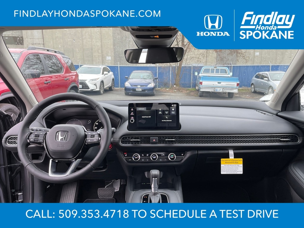 Friends, family, and neighbors have chosen us time and time again to be their dealer. Our simple and easy process, market aggressive pricing, and friendly knowledgeable staff are all reasons why. Come see for yourself why we are the top rated dealer in Spokane. Our process is designed to be easy, give you choices, and save you time. Our pressure free buying process allows you to see the quote you want. We give every customer multiple different monthly payments and down payments all on one sheet, so you can choose the one that best fits your budget. Come see how easy it is to purchase a car, truck, SUV from Findlay Honda Spokane. This Honda HR-V is equipped with these features: 18" Machine-Finished Alloy Wheels, 4-Wheel Disc Brakes, 8 Speakers, ABS brakes, Adaptive Cruise Control: Adaptive Cruise Control (ACC) with Low-Speed Follow, Air Conditioning, Alloy wheels, AM/FM radio, Apple CarPlay/Android Auto, Auto High-beam Headlights, Auto-dimming Rear-View mirror, Automatic temperature control, Blind Spot Information (BSI) System warning, Brake assist, Bumpers: body-color, Compass, Delay-off headlights, Driver door bin, Driver vanity mirror, Dual front impact airbags, Dual front side impact airbags, Electronic Stability Control, Exterior Parking Camera Rear, Four wheel independent suspension, Front anti-roll bar, Front Bucket Seats, Front Center Armrest, Front dual zone A/C, Front reading lights, Fully automatic headlights, Heated door mirrors, Heated Front Bucket Seats, Heated front seats, Illuminated entry, Knee airbag, Leather Shift Knob, Leather steering wheel, Leather-Trimmed Seats, Low tire pressure warning, Occupant sensing airbag, Outside temperature display, Overhead airbag, Panic alarm, Passenger door bin, Passenger vanity mirror, Power door mirrors, Power driver seat, Power moonroof, Power steering, Power windows, Radio data system, Radio: 180-Watt Audio System with 8 Speakers, Rear anti-roll bar, Rear reading lights, Rear side impact airbag, Rear window defroster, Rear window wiper, Remote keyless entry, Security system, Speed control, Speed-sensing steering, Split folding rear seat, Spoiler, Steering wheel mounted audio controls, Tachometer, Telescoping steering wheel, Tilt steering wheel, Traction control, Trip computer, Turn signal indicator mirrors, and Variably intermittent wipers.