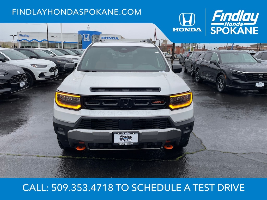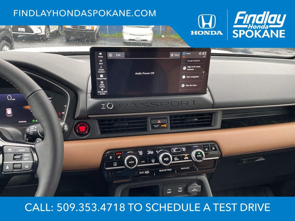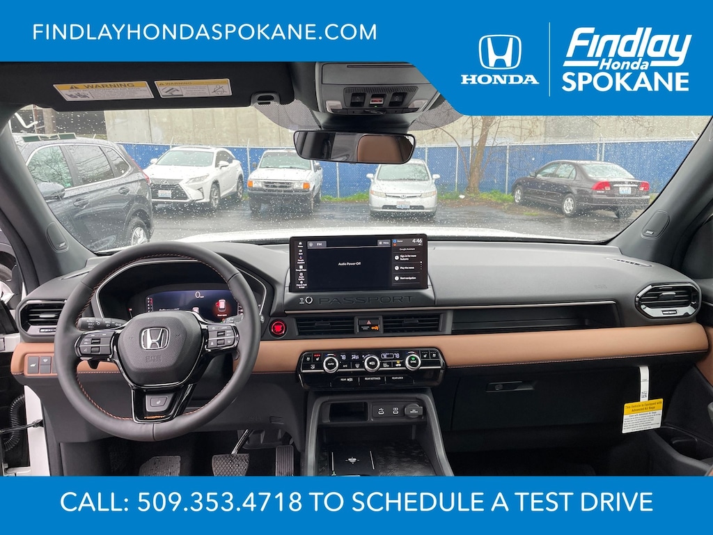Friends, family, and neighbors have chosen us time and time again to be their dealer. Our simple and easy process, market aggressive pricing, and friendly knowledgeable staff are all reasons why. Come see for yourself why we are the top rated dealer in Spokane. Our process is designed to be easy, give you choices, and save you time. Our pressure free buying process allows you to see the quote you want. We give every customer multiple different monthly payments and down payments all on one sheet, so you can choose the one that best fits your budget. Come see how easy it is to purchase a car, truck, SUV from Findlay Honda Spokane. This Honda Passport is equipped with these features: 12 Speakers, 4-Wheel Disc Brakes, ABS brakes, Adaptive Cruise Control: Adaptive Cruise Control (ACC) with Low-Speed Follow, Air Conditioning, Alloy wheels, Apple CarPlay/Android Auto, Auto High-beam Headlights, Auto-dimming door mirrors, Auto-dimming Rear-View mirror, Automatic temperature control, Blind Spot Information (BSI) System warning, Brake assist, Compass, Delay-off headlights, Driver door bin, Driver vanity mirror, Driver's Seat Mounted Armrest, Dual front impact airbags, Dual front side impact airbags, Electronic Stability Control, Emergency communication system: HondaLink, Exterior Parking Camera Rear, Four wheel independent suspension, Front anti-roll bar, Front Bucket Seats, Front Center Armrest, Front dual zone A/C, Front fog lights, Front reading lights, Fully automatic headlights, Heated and Ventilated Front Bucket Seats, Heated door mirrors, Heated front seats, Heated rear seats, Heated steering wheel, HVAC memory, Illuminated entry, Knee airbag, Lane departure: Lane Keeping Assist System (LKAS) active, Leather steering wheel, Low tire pressure warning, Memory seat, Navigation system: Google Maps, Occupant sensing airbag, Outside temperature display, Overhead airbag, Overhead console, Panic alarm, Passenger door bin, Passenger seat mounted armrest, Passenger vanity mirror, Perforated Leather Seat Trim, Power door mirrors, Power driver seat, Power Liftgate, Power moonroof, Power passenger seat, Power steering, Power windows, Radio data system, Radio: Bose Premium Sound System with 12 Speakers, Rain sensing wipers, Rear air conditioning, Rear anti-roll bar, Rear reading lights, Rear seat center armrest, Rear window defroster, Rear window wiper, Remote keyless entry, Security system, Speed control, Speed-sensing steering, Split folding rear seat, Spoiler, Steering wheel mounted audio controls, Tachometer, Telescoping steering wheel, Tilt steering wheel, Traction control, Trip computer, Turn signal indicator mirrors, Variably intermittent wipers, Ventilated front seats, and Wheels: 18" Berlina Black Machine Face Alloy.