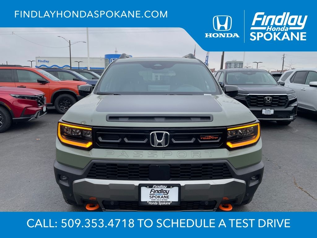 Friends, family, and neighbors have chosen us time and time again to be their dealer. Our simple and easy process, market aggressive pricing, and friendly knowledgeable staff are all reasons why. Come see for yourself why we are the top rated dealer in Spokane. Our process is designed to be easy, give you choices, and save you time. Our pressure free buying process allows you to see the quote you want. We give every customer multiple different monthly payments and down payments all on one sheet, so you can choose the one that best fits your budget. Come see how easy it is to purchase a car, truck, SUV from Findlay Honda Spokane. This Honda Passport is equipped with these features: 12 Speakers, 4-Wheel Disc Brakes, ABS brakes, Adaptive Cruise Control: Adaptive Cruise Control (ACC) with Low-Speed Follow, Air Conditioning, Alloy wheels, Apple CarPlay/Android Auto, Auto High-beam Headlights, Auto-dimming door mirrors, Auto-dimming Rear-View mirror, Automatic temperature control, Blind Spot Information (BSI) System warning, Brake assist, Compass, Delay-off headlights, Driver door bin, Driver vanity mirror, Driver's Seat Mounted Armrest, Dual front impact airbags, Dual front side impact airbags, Electronic Stability Control, Emergency communication system: HondaLink, Exterior Parking Camera Rear, Four wheel independent suspension, Front anti-roll bar, Front Bucket Seats, Front Center Armrest, Front dual zone A/C, Front fog lights, Front reading lights, Fully automatic headlights, Heated & Ventilated Front Bucket Seats, Heated door mirrors, Heated front seats, Heated rear seats, Heated steering wheel, HVAC memory, Illuminated entry, Knee airbag, Lane departure: Lane Keeping Assist System (LKAS) active, Leather steering wheel, Low tire pressure warning, Memory seat, Navigation system: Google Maps, Occupant sensing airbag, Outside temperature display, Overhead airbag, Overhead console, Panic alarm, Passenger door bin, Passenger seat mounted armrest, Passenger vanity mirror, Perforated Leather Seat Trim, Power door mirrors, Power driver seat, Power Liftgate, Power moonroof, Power passenger seat, Power steering, Power windows, Radio data system, Radio: Bose Premium Sound System w/12 Speakers, Rain sensing wipers, Rear air conditioning, Rear anti-roll bar, Rear reading lights, Rear seat center armrest, Rear window defroster, Rear window wiper, Remote keyless entry, Security system, Speed control, Speed-sensing steering, Split folding rear seat, Spoiler, Steering wheel mounted audio controls, Tachometer, Telescoping steering wheel, Tilt steering wheel, Traction control, Trip computer, Turn signal indicator mirrors, Variably intermittent wipers, Ventilated front seats, and Wheels: 18" Berlina Black Machine Face Alloy.