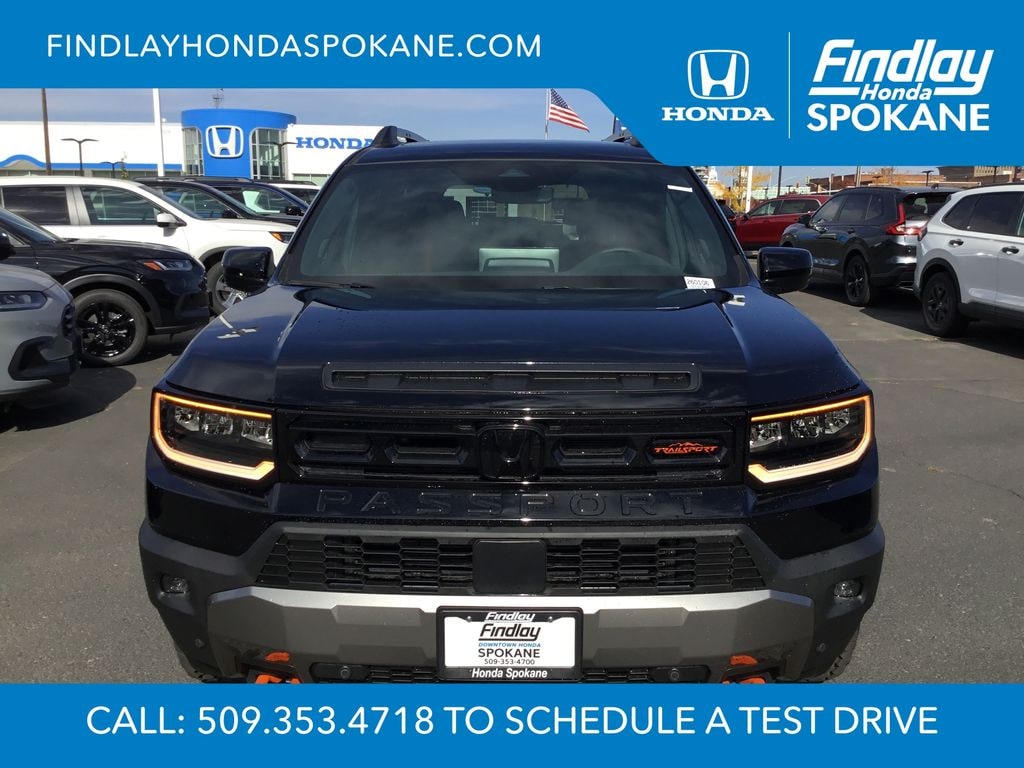 Friends, family, and neighbors have chosen us time and time again to be their dealer. Our simple and easy process, market aggressive pricing, and friendly knowledgeable staff are all reasons why. Come see for yourself why we are the top rated dealer in Spokane. Our process is designed to be easy, give you choices, and save you time. Our pressure free buying process allows you to see the quote you want. We give every customer multiple different monthly payments and down payments all on one sheet, so you can choose the one that best fits your budget. Come see how easy it is to purchase a car, truck, SUV from Findlay Honda Spokane. This Honda Passport is equipped with these features: 4-Wheel Disc Brakes, 9 Speakers, ABS brakes, Adaptive Cruise Control: Adaptive Cruise Control (ACC) with Low-Speed Follow, Air Conditioning, Alloy wheels, Apple CarPlay/Android Auto, Auto High-beam Headlights, Auto-dimming Rear-View mirror, Automatic temperature control, Blind Spot Information (BSI) System warning, Brake assist, Compass, Delay-off headlights, Driver door bin, Driver vanity mirror, Driver's Seat Mounted Armrest, Dual front impact airbags, Dual front side impact airbags, Durable Leatherette & Cloth Seat Trim, Electronic Stability Control, Emergency communication system: HondaLink, Exterior Parking Camera Rear, Four wheel independent suspension, Front anti-roll bar, Front Bucket Seats, Front Center Armrest, Front dual zone A/C, Front fog lights, Front reading lights, Fully automatic headlights, Heated door mirrors, Heated Front Bucket Seats, Heated front seats, HVAC memory, Illuminated entry, Knee airbag, Lane departure: Lane Keeping Assist System (LKAS) active, Leather steering wheel, Low tire pressure warning, Memory seat, Navigation system: Google Maps, Occupant sensing airbag, Outside temperature display, Overhead airbag, Overhead console, Panic alarm, Passenger door bin, Passenger seat mounted armrest, Passenger vanity mirror, Power door mirrors, Power driver seat, Power Liftgate, Power moonroof, Power passenger seat, Power steering, Power windows, Radio data system, Radio: Audio System w/9 Speakers, Rear air conditioning, Rear anti-roll bar, Rear reading lights, Rear seat center armrest, Rear window defroster, Rear window wiper, Remote keyless entry, Security system, Speed control, Speed-sensing steering, Split folding rear seat, Spoiler, Steering wheel mounted audio controls, Tachometer, Telescoping steering wheel, Tilt steering wheel, Traction control, Trip computer, Turn signal indicator mirrors, Variably intermittent wipers, and Wheels: 18" Matte Shark Gray Alloy.