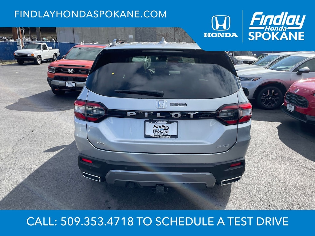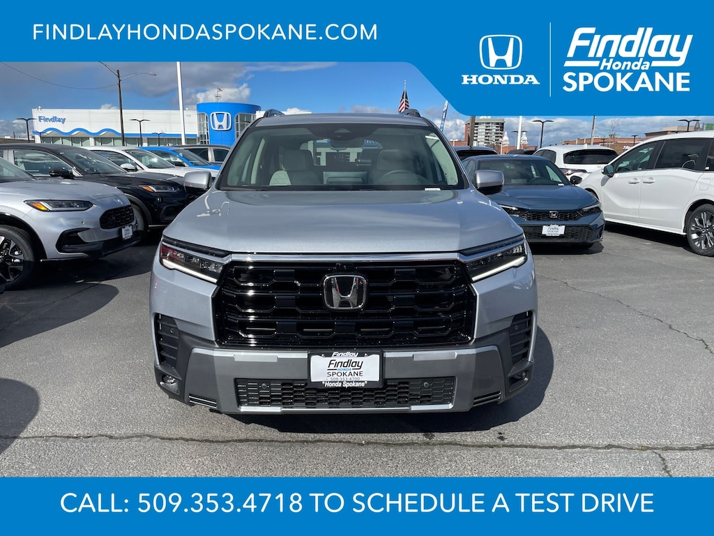 Friends, family, and neighbors have chosen us time and time again to be their dealer. Our simple and easy process, market aggressive pricing, and friendly knowledgeable staff are all reasons why. Come see for yourself why we are the top rated dealer in Spokane. Our process is designed to be easy, give you choices, and save you time. Our pressure free buying process allows you to see the quote you want. We give every customer multiple different monthly payments and down payments all on one sheet, so you can choose the one that best fits your budget. Come see how easy it is to purchase a car, truck, SUV from Findlay Honda Spokane. This Honda Pilot is equipped with these features: 12 Speakers, 3rd row seats: split-bench, 4-Wheel Disc Brakes, ABS brakes, Adaptive Cruise Control: Adaptive Cruise Control (ACC) with Low-Speed Follow, Air Conditioning, Alloy wheels, Apple CarPlay/Android Auto, Auto High-beam Headlights, Auto-dimming door mirrors, Auto-dimming Rear-View mirror, Automatic temperature control, Blind Spot Information (BSI) System warning, Bose Premium Sound System, Brake assist, Bumpers: body-color, Compass, Delay-off headlights, Driver door bin, Driver vanity mirror, Dual front impact airbags, Dual front side impact airbags, Electronic Stability Control, Emergency communication system: HondaLink, Exterior Parking Camera Rear, Four wheel independent suspension, Front anti-roll bar, Front Bucket Seats, Front Center Armrest, Front dual zone A/C, Front fog lights, Front reading lights, Fully automatic headlights, Garage door transmitter: HomeLink, Heads-Up Display, Heated and Ventilated Front Bucket Seats, Heated door mirrors, Heated front seats, Heated rear seats, Heated steering wheel, HondaLink, HondaLink Subscription Services, Illuminated entry, Knee airbag, Lane departure: Lane Keeping Assist System (LKAS) active, Low tire pressure warning, Memory seat, Navigation system: Google Maps, Occupant sensing airbag, Outside temperature display, Overhead airbag, Overhead console, Panic alarm, Passenger door bin, Passenger vanity mirror, Perforated Leather-Trimmed Seat Trim, Power door mirrors, Power driver seat, Power Liftgate, Power moonroof, Power passenger seat, Power steering, Power windows, Radio data system, Rain sensing wipers, Rear air conditioning, Rear anti-roll bar, Rear reading lights, Rear seat center armrest, Rear window defroster, Rear window wiper, Reclining 3rd row seat, Remote keyless entry, Security system, Speed control, Speed-sensing steering, Speed-Sensitive Wipers, Split folding rear seat, Spoiler, Steering wheel mounted audio controls, Tachometer, Telescoping steering wheel, Tilt steering wheel, Traction control, Trip computer, Turn signal indicator mirrors, Variably intermittent wipers, Ventilated front seats, and Wheels: 20" Shark Gray Machined Face.