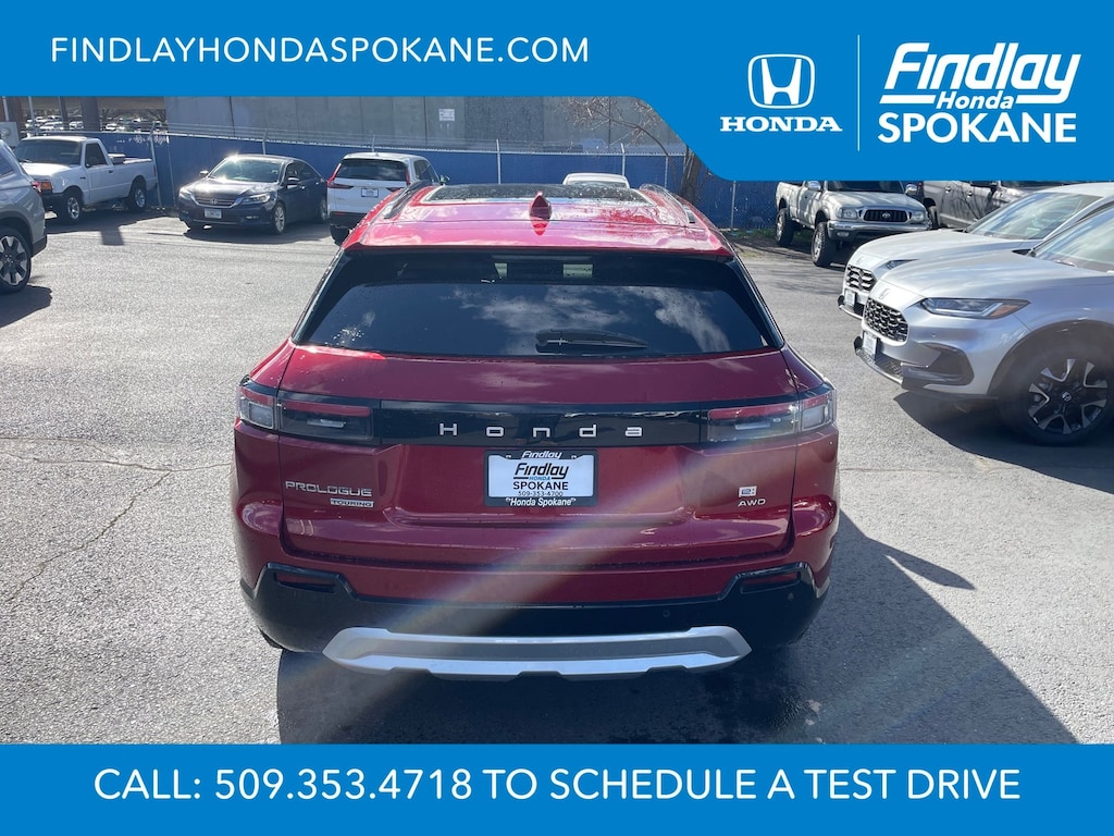 Friends, family, and neighbors have chosen us time and time again to be their dealer. Our simple and easy process, market aggressive pricing, and friendly knowledgeable staff are all reasons why. Come see for yourself why we are the top rated dealer in Spokane. Our process is designed to be easy, give you choices, and save you time. Our pressure free buying process allows you to see the quote you want. We give every customer multiple different monthly payments and down payments all on one sheet, so you can choose the one that best fits your budget. Come see how easy it is to purchase a car, truck, SUV from Findlay Honda Spokane. This Honda Prologue is equipped with these features: 12 Speakers, 19" x 8.5" Alloy Wheels, 4-Wheel Disc Brakes, ABS brakes, Air Conditioning, Alloy wheels, AM/FM radio: SiriusXM, Apple CarPlay/Android Auto, Auto High-beam Headlights, Auto-dimming Rear-View mirror, Automatic temperature control, Bose Premium Audio System, Brake assist, Bumpers: body-color, Compass, Delay-off headlights, Driver door bin, Driver vanity mirror, Dual front impact airbags, Dual front side impact airbags, Electronic Stability Control, Emergency communication system: HondaLink connected by OnStar, Exterior Parking Camera Rear, Four wheel independent suspension, Front anti-roll bar, Front Bucket Seats, Front Center Armrest, Front dual zone A/C, Front fog lights, Front reading lights, Fully automatic headlights, Garage door transmitter: HomeLink, Heated door mirrors, Heated Front Bucket Seats, Heated front seats, Illuminated entry, Knee airbag, Lane departure: Lane Keeping Assist System (LKAS) active, Leather Seat Trim, Leather steering wheel, Low tire pressure warning, Memory seat, Navigation System, Occupant sensing airbag, Outside temperature display, Overhead airbag, Overhead console, Panic alarm, Passenger door bin, Passenger vanity mirror, Power door mirrors, Power driver seat, Power Liftgate, Power moonroof, Power passenger seat, Power steering, Power windows, Rear anti-roll bar, Rear reading lights, Rear seat center armrest, Rear window defroster, Rear window wiper, Remote keyless entry, Speed control, Split folding rear seat, Spoiler, Steering wheel mounted audio controls, Telescoping steering wheel, Tilt steering wheel, Traction control, Trip computer, Turn signal indicator mirrors, and Variably intermittent wipers.