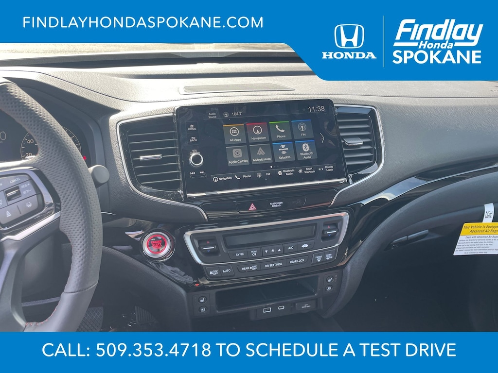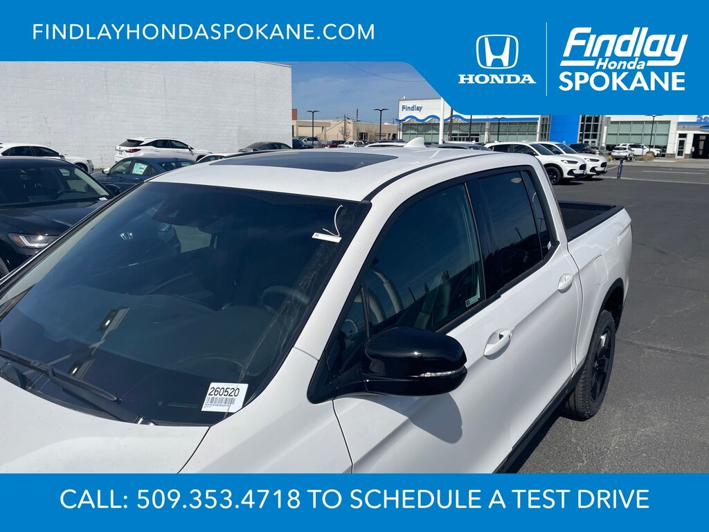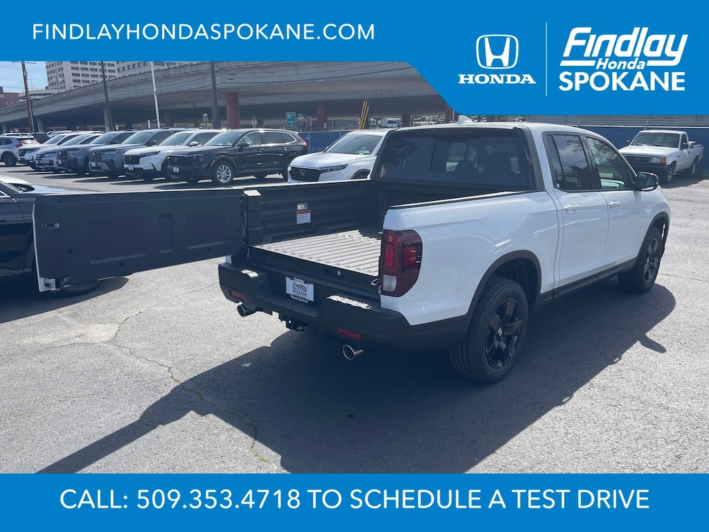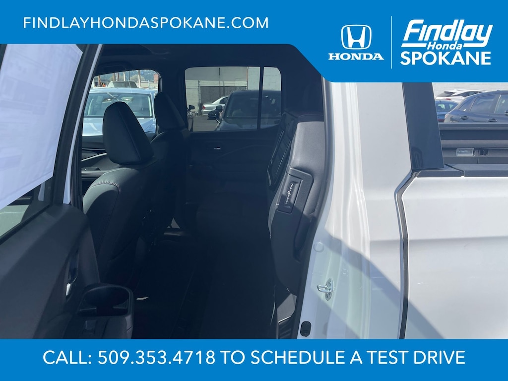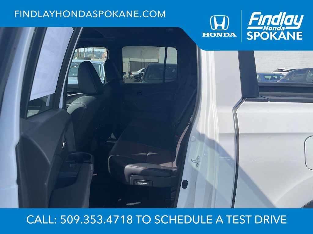 Friends, family, and neighbors have chosen us time and time again to be their dealer. Our simple and easy process, market aggressive pricing, and friendly knowledgeable staff are all reasons why. Come see for yourself why we are the top rated dealer in Spokane. Our process is designed to be easy, give you choices, and save you time. Our pressure free buying process allows you to see the quote you want. We give every customer multiple different monthly payments and down payments all on one sheet, so you can choose the one that best fits your budget. Come see how easy it is to purchase a car, truck, SUV from Findlay Honda Spokane. This Honda Ridgeline is equipped with these features: 4-Wheel Disc Brakes, 4.33 Axle Ratio, 8 Speakers, ABS brakes, Air Conditioning, Alloy wheels, AM/FM radio: SiriusXM, Auto High-beam Headlights, Auto-dimming Rear-View mirror, Automatic temperature control, Blind Spot Information (BSI) System warning, Bluetooth® Hands-Free Link, Brake assist, Bumpers: body-color, Compass, Delay-off headlights, Driver door bin, Driver vanity mirror, Driver's Seat Mounted Armrest, Dual front impact airbags, Dual front side impact airbags, Electronic Stability Control, Emergency communication system: HondaLink Assist, Exterior Parking Camera Rear, Four wheel independent suspension, Front anti-roll bar, Front Bucket Seats, Front dual zone A/C, Front fog lights, Front reading lights, Fully automatic headlights, Garage door transmitter: HomeLink, Heated and Ventilated Front Bucket Seats, Heated door mirrors, Heated front seats, Heated rear seats, Heated steering wheel, Honda Satellite-Linked Navigation System, Illuminated entry, Leather Seat Trim, Leather steering wheel, Low tire pressure warning, Memory seat, Navigation system: Honda Satellite-Linked Navigation System, Occupant sensing airbag, Outside temperature display, Overhead airbag, Overhead console, Panic alarm, Passenger door bin, Passenger seat mounted armrest, Passenger vanity mirror, Power door mirrors, Power driver seat, Power moonroof, Power passenger seat, Power steering, Power windows, Radio data system, Radio: 540-Watt Premium Audio System with 8 Speakers, Rear air conditioning, Rear anti-roll bar, Rear reading lights, Rear seat center armrest, Rear step bumper, Rear window defroster, Remote keyless entry, Security system, SiriusXM, Speed control, Speed-sensing steering, Split folding rear seat, Steering wheel mounted audio controls, Tachometer, Telescoping steering wheel, Tilt steering wheel, Traction control, Trip computer, Turn signal indicator mirrors, Variably intermittent wipers, Ventilated front seats, and Wheels: 18" Berlina Black Alloy.