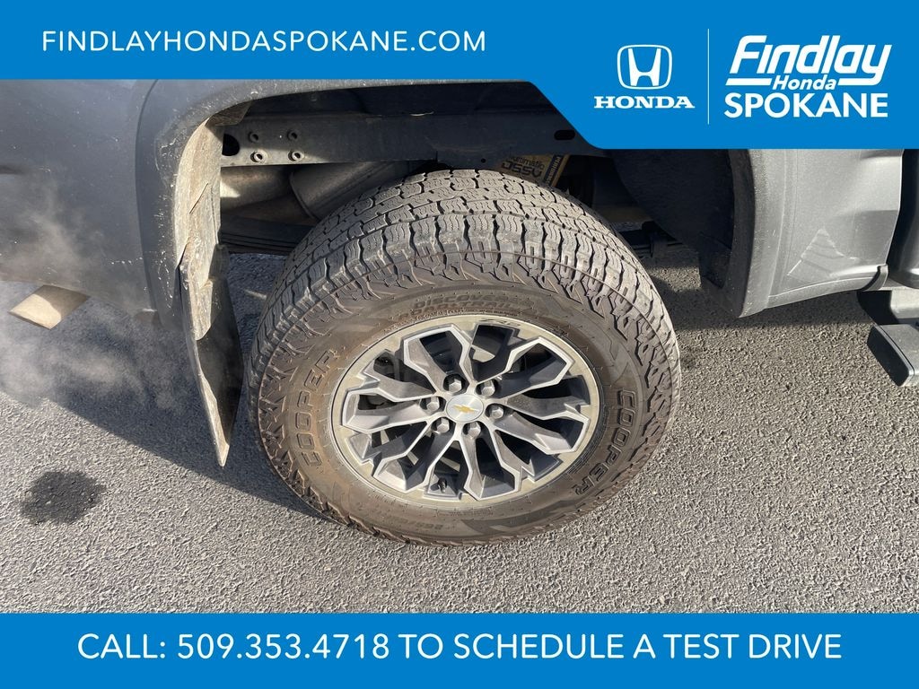 Friends, family, and neighbors have chosen us time and time again to be their dealer. Our simple and easy process, market aggressive pricing, and friendly knowledgeable staff are all reasons why. Come see for yourself why we are the top rated dealer in Spokane. Our process is designed to be easy, give you choices, and save you time. Our pressure free buying process allows you to see the quote you want. We give every customer multiple different monthly payments and down payments all on one sheet, so you can choose the one that best fits your budget. Come see how easy it is to purchase a car, truck, SUV from Findlay Honda Spokane. This Chevrolet Colorado is equipped with these features: Heavy-Duty Trailering Package, Preferred Equipment Group 4ZR (Black Rear Bumpers, Black Spray-On Bedliner w/Chevrolet Logo, Driver-Selectable Full-Locking Front Differential, Driver-Selectable Full-Locking Rear Differential, Hitch Guidance, Integrated Trailer Brake Controller, and Tow/Haul Mode), ZR2 Off-Road Package, 3.42 Rear Axle Ratio, 4-Way Power Front Passenger Seat Adjuster, 4-Wheel Disc Brakes, 6 Speakers, 6-Speaker Audio System Feature, ABS brakes, Air Conditioning, Alloy wheels, AM/FM radio: SiriusXM, Apple CarPlay/Android Auto, Auto-dimming Rear-View mirror, Automatic temperature control, Compass, Delay-off headlights, Driver 6-Way Power Seat Adjuster, Driver door bin, Driver vanity mirror, Dual front impact airbags, Dual front side impact airbags, Electronic Stability Control, Engine Block Heater, Exterior Parking Camera Rear, Front anti-roll bar, Front Bucket Seats, Front Center Armrest, Front License Plate Kit, Front reading lights, Front wheel independent suspension, Fully automatic headlights, HD Radio, Heated door mirrors, Heated Driver & Front Passenger Seats, Heated front seats, Heated steering wheel, Illuminated entry, Leather-Appointed Seat Trim, Low tire pressure warning, Occupant sensing airbag, Outside temperature display, Overhead airbag, Overhead console, Panic alarm, Passenger door bin, Passenger vanity mirror, Power door mirrors, Power Driver Lumbar Control Seat Adjuster, Power driver seat, Power Passenger Lumbar Control Seat Adjuster, Power passenger seat, Power steering, Power windows, Premium audio system: Chevrolet Infotainment 3 Plus, Radio data system, Radio: Chevrolet Infotainment 3 Plus System, Rear reading lights, Rear seat center armrest, Rear step bumper, Rear window defroster, Remote keyless entry, Security system, SiriusXM Radio, Speed control, Speed-sensing steering, Steering wheel mounted audio controls, Tachometer, Telescoping steering wheel, Tilt steering wheel, Traction control, Trip computer, Variably intermittent wipers, and Wheels: 17" x 8" Graphite & Oxide Gold Aluminum.