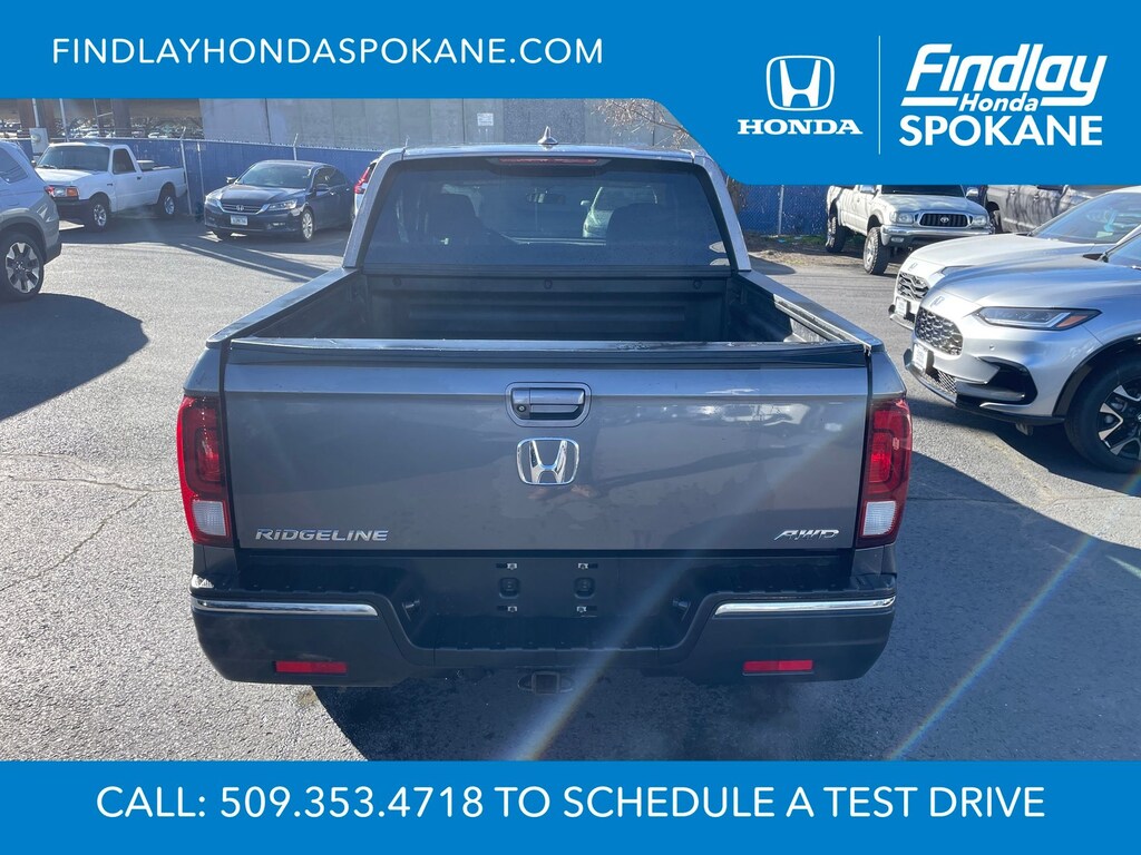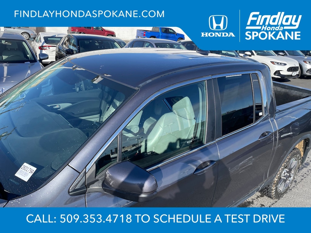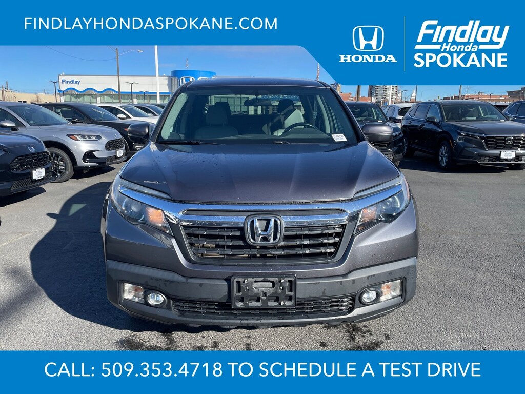 Friends, family, and neighbors have chosen us time and time again to be their dealer. Our simple and easy process, market aggressive pricing, and friendly knowledgeable staff are all reasons why. Come see for yourself why we are the top rated dealer in Spokane. Our process is designed to be easy, give you choices, and save you time. Our pressure free buying process allows you to see the quote you want. We give every customer multiple different monthly payments and down payments all on one sheet, so you can choose the one that best fits your budget. Come see how easy it is to purchase a car, truck, SUV from Findlay Honda Spokane. This Honda Ridgeline is equipped with these features: 18" Machine-Finished Alloy Wheels, 4-Wheel Disc Brakes, 4.25 Axle Ratio, 7 Speakers, ABS brakes, Air Conditioning, Alloy wheels, AM/FM radio, Automatic temperature control, Brake assist, Bumpers: body-color, Delay-off headlights, Driver door bin, Driver vanity mirror, Driver's Seat Mounted Armrest, Dual front impact airbags, Dual front side impact airbags, Electronic Stability Control, Emergency communication system: HondaLink, Exterior Parking Camera Rear, Four wheel independent suspension, Front anti-roll bar, Front Bucket Seats, Front dual zone A/C, Front fog lights, Front reading lights, Fully automatic headlights, Garage door transmitter: HomeLink, Heated door mirrors, Heated Front Bucket Seats, Heated front seats, Illuminated entry, Leather Seat Trim, Low tire pressure warning, Occupant sensing airbag, Outside temperature display, Overhead airbag, Overhead console, Panic alarm, Passenger door bin, Passenger seat mounted armrest, Passenger vanity mirror, Power door mirrors, Power driver seat, Power passenger seat, Power steering, Power windows, Radio data system, Radio: AM/FM/MP3, Rear air conditioning, Rear anti-roll bar, Rear reading lights, Rear seat center armrest, Rear step bumper, Rear window defroster, Remote keyless entry, Security system, Speed control, Speed-sensing steering, Split folding rear seat, Steering wheel mounted audio controls, Tachometer, Telescoping steering wheel, Tilt steering wheel, Traction control, Trip computer, Turn signal indicator mirrors, and Variably intermittent wipers.