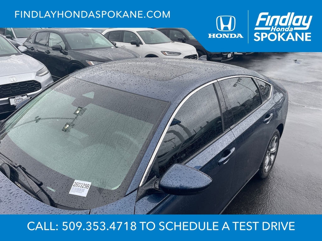 Friends, family, and neighbors have chosen us time and time again to be their dealer. Our simple and easy process, market aggressive pricing, and friendly knowledgeable staff are all reasons why. Come see for yourself why we are the top rated dealer in Spokane. Our process is designed to be easy, give you choices, and save you time. Our pressure free buying process allows you to see the quote you want. We give every customer multiple different monthly payments and down payments all on one sheet, so you can choose the one that best fits your budget. Come see how easy it is to purchase a car, truck, SUV from Findlay Honda Spokane. This Honda Accord is equipped with these features: 4-Wheel Disc Brakes, 8 Speakers, ABS brakes, Adaptive Cruise Control: Adaptive Cruise Control (ACC) with Low-Speed Follow, Air Conditioning, Alloy wheels, AM/FM radio, Apple CarPlay/Android Auto, Auto High-beam Headlights, Auto-dimming Rear-View mirror, Automatic temperature control, Blind Spot Information (BSI) System warning, Brake assist, Bumpers: body-color, Compass, Delay-off headlights, Driver door bin, Driver vanity mirror, Dual front impact airbags, Dual front side impact airbags, Electronic Stability Control, Emergency communication system: HondaLink Assist, Exterior Parking Camera Rear, Fabric Seat Trim, Four wheel independent suspension, Front anti-roll bar, Front Bucket Seats, Front Center Armrest, Front dual zone A/C, Front reading lights, Fully automatic headlights, Heated Front Bucket Seats, Heated front seats, Illuminated entry, Knee airbag, Lane departure: Lane Keeping Assist System (LKAS) active, Low tire pressure warning, Occupant sensing airbag, Outside temperature display, Overhead airbag, Overhead console, Panic alarm, Passenger door bin, Passenger vanity mirror, Power door mirrors, Power driver seat, Power moonroof, Power steering, Power windows, Radio data system, Radio: 180-Watt AM/FM Audio System, Rear anti-roll bar, Rear reading lights, Rear seat center armrest, Rear side impact airbag, Rear window defroster, Remote keyless entry, Security system, Speed control, Speed-sensing steering, Speed-Sensitive Wipers, Split folding rear seat, Steering wheel mounted audio controls, Tachometer, Telescoping steering wheel, Tilt steering wheel, Traction control, Trip computer, Variably intermittent wipers, and Wheels: 17" x 7.5" Pewter Gray.