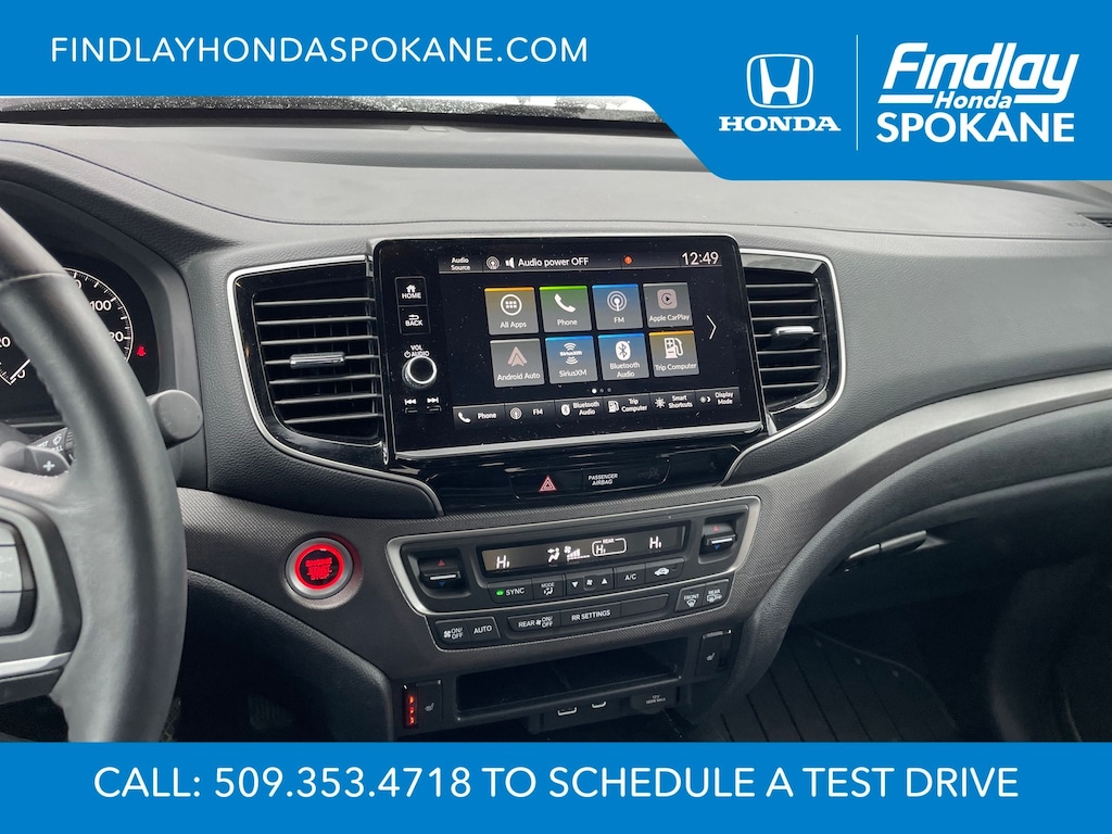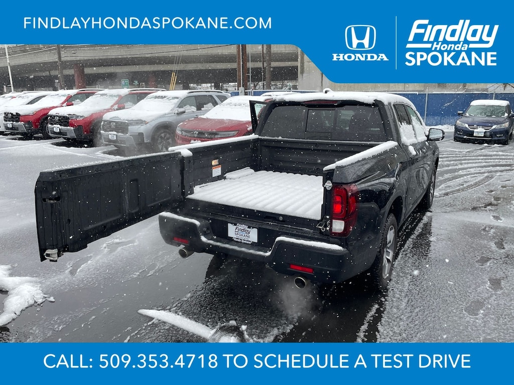 Friends, family, and neighbors have chosen us time and time again to be their dealer. Our simple and easy process, market aggressive pricing, and friendly knowledgeable staff are all reasons why. Come see for yourself why we are the top rated dealer in Spokane. Our process is designed to be easy, give you choices, and save you time. Our pressure free buying process allows you to see the quote you want. We give every customer multiple different monthly payments and down payments all on one sheet, so you can choose the one that best fits your budget. Come see how easy it is to purchase a car, truck, SUV from Findlay Honda Spokane. This Honda Ridgeline is equipped with these features: 4-Wheel Disc Brakes, 4.33 Axle Ratio, 7 Speakers, ABS brakes, Air Conditioning, Alloy wheels, AM/FM radio: SiriusXM, Auto-dimming Rear-View mirror, Automatic temperature control, Blind Spot Information (BSI) System warning, Bluetooth® Hands-Free Link, Brake assist, Bumpers: body-color, Compass, Delay-off headlights, Driver door bin, Driver vanity mirror, Driver's Seat Mounted Armrest, Dual front impact airbags, Dual front side impact airbags, Electronic Stability Control, Emergency communication system: HondaLink Assist, Exterior Parking Camera Rear, Four wheel independent suspension, Front anti-roll bar, Front Bucket Seats, Front dual zone A/C, Front fog lights, Front reading lights, Fully automatic headlights, Garage door transmitter: HomeLink, Heated door mirrors, Heated Front Bucket Seats, Heated front seats, Illuminated entry, Leather Seat Trim, Leather steering wheel, Low tire pressure warning, Memory seat, Occupant sensing airbag, Outside temperature display, Overhead airbag, Overhead console, Panic alarm, Passenger door bin, Passenger seat mounted armrest, Passenger vanity mirror, Power door mirrors, Power driver seat, Power moonroof, Power passenger seat, Power steering, Power windows, Radio data system, Radio: 215-Watt Audio System w/7 Speakers, Rear air conditioning, Rear anti-roll bar, Rear reading lights, Rear seat center armrest, Rear step bumper, Rear window defroster, Remote keyless entry, Security system, SiriusXM, Speed control, Speed-sensing steering, Split folding rear seat, Steering wheel mounted audio controls, Tachometer, Telescoping steering wheel, Tilt steering wheel, Traction control, Trip computer, Turn signal indicator mirrors, Variably intermittent wipers, Wheels: 18" Pewter Gray Machine-Finished Alloy, and Wireless Apple CarPlay/Wireless Android Auto.