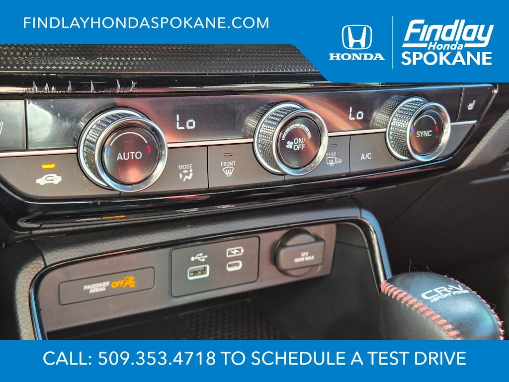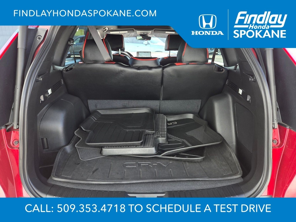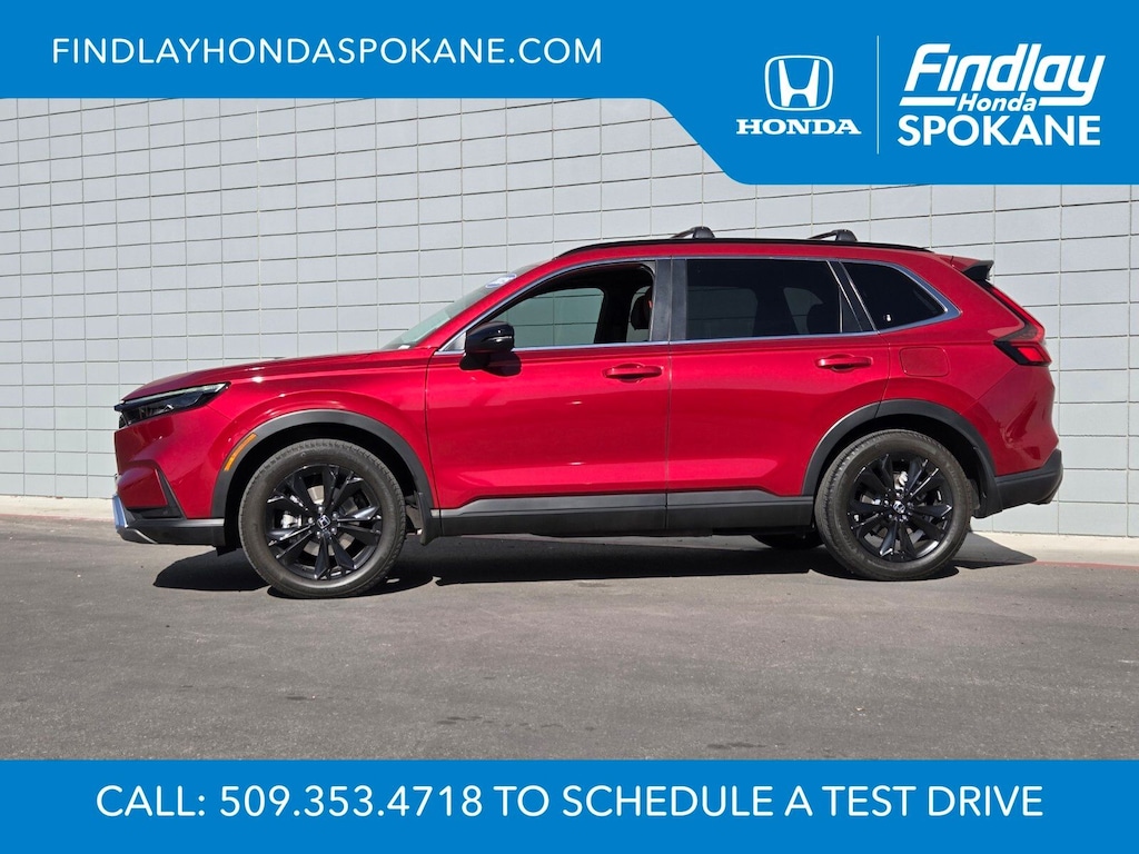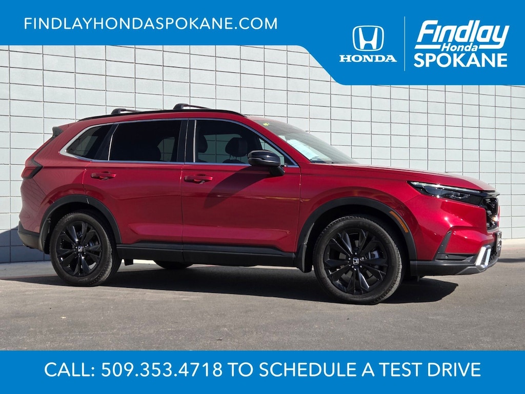 Friends, family, and neighbors have chosen us time and time again to be their dealer. Our simple and easy process, market aggressive pricing, and friendly knowledgeable staff are all reasons why. Come see for yourself why we are the top rated dealer in Spokane. Our process is designed to be easy, give you choices, and save you time. Our pressure free buying process allows you to see the quote you want. We give every customer multiple different monthly payments and down payments all on one sheet, so you can choose the one that best fits your budget. Come see how easy it is to purchase a car, truck, SUV from Findlay Honda Spokane. This Honda CR-V Hybrid is equipped with these features: 12 Speakers, 4-Wheel Disc Brakes, ABS brakes, Adaptive Cruise Control: Adaptive Cruise Control (ACC) with Low-Speed Follow, Air Conditioning, Alloy wheels, AM/FM radio: SiriusXM, Auto High-beam Headlights, Auto-dimming Rear-View mirror, Automatic temperature control, Blind Spot Information (BSI) System warning, Brake assist, Bumpers: body-color, Compass, Delay-off headlights, Driver door bin, Driver vanity mirror, Dual front impact airbags, Dual front side impact airbags, Electronic Stability Control, Exterior Parking Camera Rear, Four wheel independent suspension, Front anti-roll bar, Front Bucket Seats, Front Center Armrest, Front dual zone A/C, Front reading lights, Fully automatic headlights, Heated door mirrors, Heated Front Bucket Seats, Heated front seats, Heated steering wheel, Illuminated entry, Knee airbag, Leather Seat Trim, Leather Shift Knob, Leather steering wheel, Low tire pressure warning, Memory seat, Navigation system: Honda Satellite-Linked Navigation System, Occupant sensing airbag, Outside temperature display, Overhead airbag, Overhead console, Panic alarm, Passenger door bin, Passenger vanity mirror, Power door mirrors, Power driver seat, Power Liftgate, Power moonroof, Power passenger seat, Power steering, Power windows, Radio data system, Radio: Bose Premium Sound System w/Navigation, Rain sensing wipers, Rear anti-roll bar, Rear reading lights, Rear seat center armrest, Rear side impact airbag, Rear window defroster, Rear window wiper, Remote keyless entry, Security system, Speed control, Speed-sensing steering, Speed-Sensitive Wipers, Split folding rear seat, Spoiler, Steering wheel mounted audio controls, Telescoping steering wheel, Tilt steering wheel, Traction control, Trip computer, Turn signal indicator mirrors, Variably intermittent wipers, and Wheels: 19" Berlina Black Alloy.