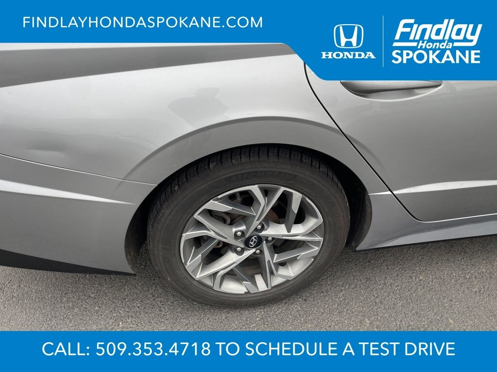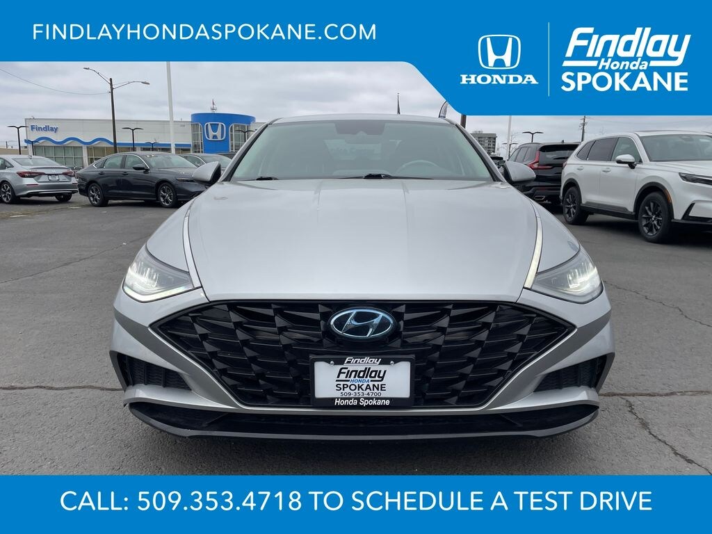Friends, family, and neighbors have chosen us time and time again to be their dealer. Our simple and easy process, market aggressive pricing, and friendly knowledgeable staff are all reasons why. Come see for yourself why we are the top rated dealer in Spokane. Our process is designed to be easy, give you choices, and save you time. Our pressure free buying process allows you to see the quote you want. We give every customer multiple different monthly payments and down payments all on one sheet, so you can choose the one that best fits your budget. Come see how easy it is to purchase a car, truck, SUV from Findlay Honda Spokane. This Hyundai Sonata is equipped with these features: Blue Link Connected Care & Remote Package, Option Group 01, 4-Wheel Disc Brakes, 6 Speakers, ABS brakes, Air Conditioning, Alloy wheels, AM/FM radio: SiriusXM, Apple CarPlay & Android Auto, Auto High-beam Headlights, Automatic temperature control, Brake assist, Bumpers: body-color, Carpeted Floor Mats, Delay-off headlights, Driver door bin, Driver vanity mirror, Dual front impact airbags, Dual front side impact airbags, Electronic Stability Control, Emergency communication system: Blue Link Connected Care (3-year subscription), Exterior Parking Camera Rear, Four wheel independent suspension, Front anti-roll bar, Front Bucket Seats, Front Center Armrest, Front dual zone A/C, Front reading lights, Fully automatic headlights, Heated door mirrors, Heated Front Bucket Seats, Heated front seats, Illuminated entry, Knee airbag, Low tire pressure warning, Occupant sensing airbag, Outside temperature display, Overhead airbag, Overhead console, Panic alarm, Passenger door bin, Passenger vanity mirror, Power door mirrors, Power driver seat, Power steering, Power windows, Premium Cloth Seating Surfaces, Radio data system, Radio: AM/FM/MP3/HD/SiriusXM Display Audio, Rear anti-roll bar, Rear seat center armrest, Rear side impact airbag, Rear window defroster, Remote keyless entry, Security system, Speed control, Speed-sensing steering, Speed-Sensitive Wipers, Split folding rear seat, Steering wheel mounted audio controls, Tachometer, Telescoping steering wheel, Tilt steering wheel, Traction control, Trip computer, Turn signal indicator mirrors, Variably intermittent wipers, and Wheels: 17 x 7.0J Aluminum Alloy.