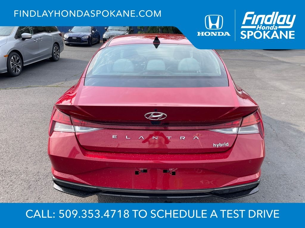 Friends, family, and neighbors have chosen us time and time again to be their dealer. Our simple and easy process, market aggressive pricing, and friendly knowledgeable staff are all reasons why. Come see for yourself why we are the top rated dealer in Spokane. Our process is designed to be easy, give you choices, and save you time. Our pressure free buying process allows you to see the quote you want. We give every customer multiple different monthly payments and down payments all on one sheet, so you can choose the one that best fits your budget. Come see how easy it is to purchase a car, truck, SUV from Findlay Honda Spokane. This Hyundai Elantra Hybrid is equipped with these features: Cargo Package (Cargo Block, Cargo Net, and Reversible Cargo Tray), Option Group 01, 17" x 7.0J Alloy Wheels, 4-Wheel Disc Brakes, 8 Speakers, ABS brakes, Air Conditioning, Alloy wheels, AM/FM radio: SiriusXM, Apple CarPlay & Android Auto, Auto High-beam Headlights, Auto-dimming Rear-View mirror, Automatic temperature control, Brake assist, Bumpers: body-color, Carpeted Floor Mats, Delay-off headlights, Driver door bin, Driver vanity mirror, Dual front impact airbags, Dual front side impact airbags, Electronic Stability Control, Emergency communication system: Blue Link Connected Car Service (3-year complimentary subscription), Exterior Parking Camera Rear, First Aid Kit, Front anti-roll bar, Front Bucket Seats, Front Center Armrest, Front dual zone A/C, Front reading lights, Front wheel independent suspension, Fully automatic headlights, Heated & Ventilated Front Bucket Seats, Heated door mirrors, Heated front seats, Illuminated entry, Leather Seat Trim, Leather Shift Knob, Low tire pressure warning, Memory seat, Mudguards, Navigation System, Occupant sensing airbag, Outside temperature display, Overhead airbag, Overhead console, Panic alarm, Passenger door bin, Passenger vanity mirror, Power door mirrors, Power driver seat, Power moonroof, Power steering, Power windows, Radio: AM/FM/HD/SiriusXM Display Audio, Rear seat center armrest, Rear window defroster, Remote keyless entry, Security system, Speed control, Speed-sensing steering, Split folding rear seat, Steering wheel mounted audio controls, Tachometer, Telescoping steering wheel, Tilt steering wheel, Traction control, Trip computer, Turn signal indicator mirrors, Variably intermittent wipers, Ventilated front seats, and Wheel Locks.