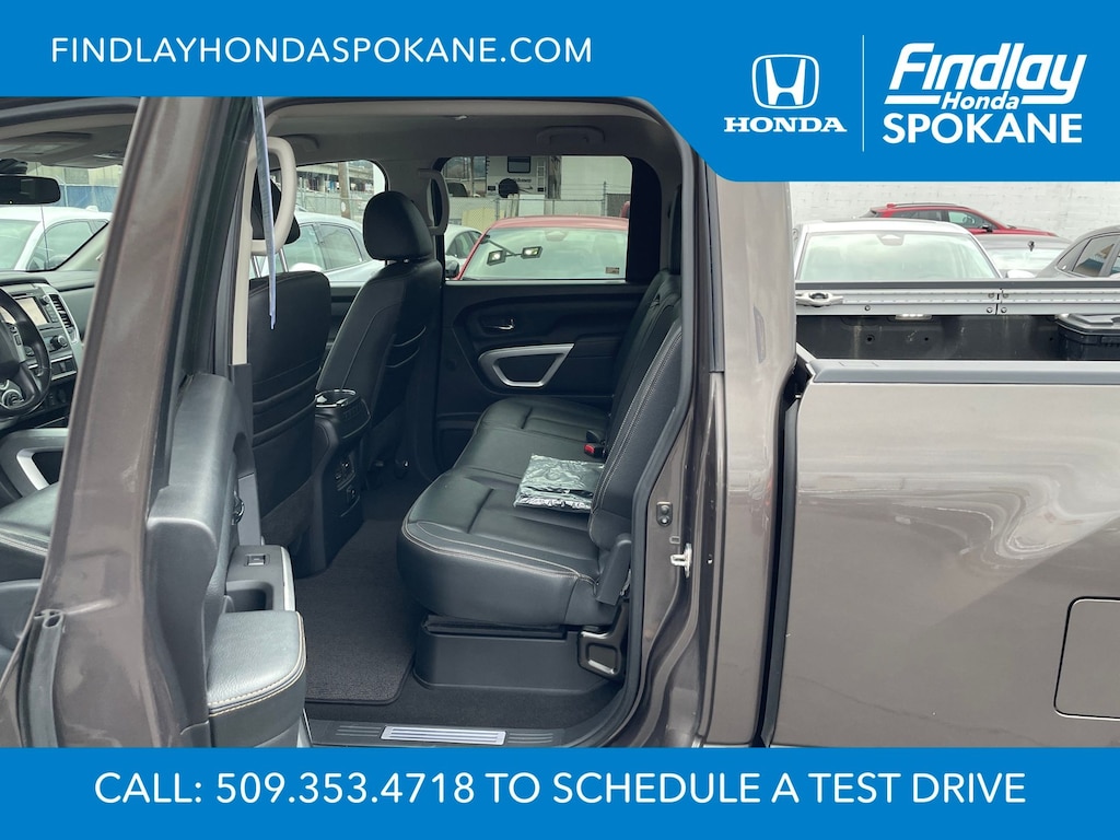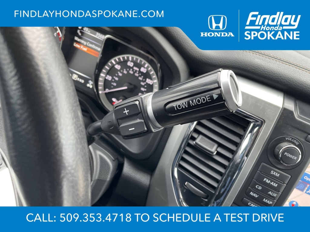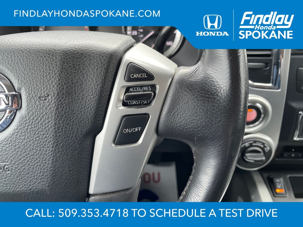 Friends, family, and neighbors have chosen us time and time again to be their dealer. Our simple and easy process, market aggressive pricing, and friendly knowledgeable staff are all reasons why. Come see for yourself why we are the top rated dealer in Spokane. Our process is designed to be easy, give you choices, and save you time. Our pressure free buying process allows you to see the quote you want. We give every customer multiple different monthly payments and down payments all on one sheet, so you can choose the one that best fits your budget. Come see how easy it is to purchase a car, truck, SUV from Findlay Honda Spokane. This Nissan Titan XD is equipped with these features: Chrome Package (Chrome Exhaust Finisher, Chrome Grille, Metallic Kick Plates, and Wheels: 20" x 7.5" Chrome), 12 Speakers, 3.916 Axle Ratio, 4-Wheel Disc Brakes, ABS brakes, Air Conditioning, Alloy wheels, AM/FM radio: SiriusXM, Auto tilt-away steering wheel, Auto-dimming door mirrors, Auto-dimming Rear-View mirror, Automatic temperature control, Block heater, Brake assist, Bumpers: chrome, Carpet Floor Mats, CD player, Compass, Delay-off headlights, Driver door bin, Driver vanity mirror, Dual front impact airbags, Dual front side impact airbags, Electronic Stability Control, Emergency communication system, Front anti-roll bar, Front Bucket Seats, Front Center Armrest, Front dual zone A/C, Front fog lights, Front reading lights, Front wheel independent suspension, Garage door transmitter: HomeLink, Heated Captain's Chairs, Heated door mirrors, Heated front seats, Illuminated entry, Leather Seat Trim, Leather steering wheel, LED Fog Lights w/Bright Chrome Bezel, Low tire pressure warning, Memory seat, Navigation System, Outside temperature display, Overhead airbag, Overhead console, Panic alarm, Passenger door bin, Passenger vanity mirror, Power door mirrors, Power driver seat, Power passenger seat, Power steering, Power windows, Radio data system, Radio: NissanConnect w/Navigation & Mobile Apps, Rain sensing wipers, Rear anti-roll bar, Rear seat center armrest, Rear step bumper, Rear window defroster, Remote keyless entry, Rockford Fosgate Premium Audio w/12 Speakers, Security system, Speed control, Speed-sensing steering, Speed-Sensitive Wipers, Splash Guards (B93), Split folding rear seat, Steering wheel memory, Steering wheel mounted audio controls, Tachometer, Telescoping steering wheel, Tilt steering wheel, Traction control, Turn signal indicator mirrors, Variably intermittent wipers, Voltmeter, and Wheels: 20" x 7.5" Painted Alloy.