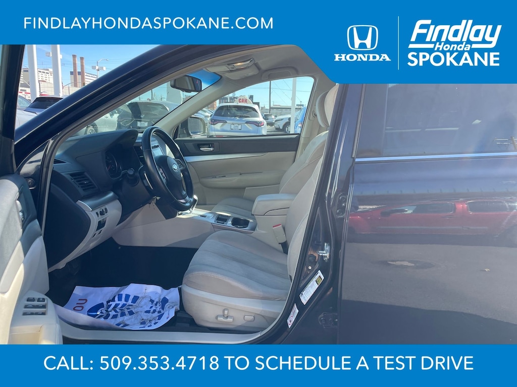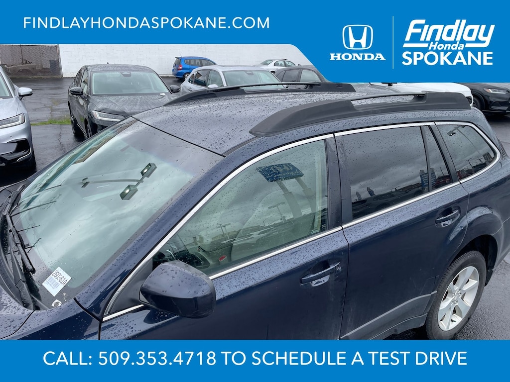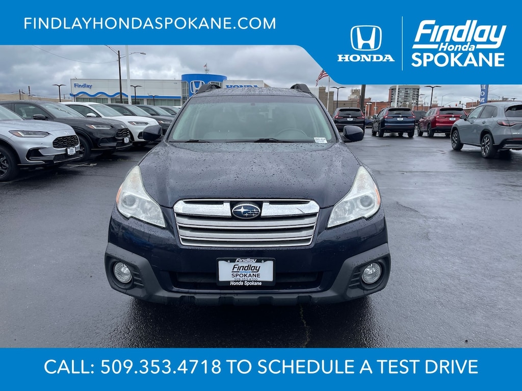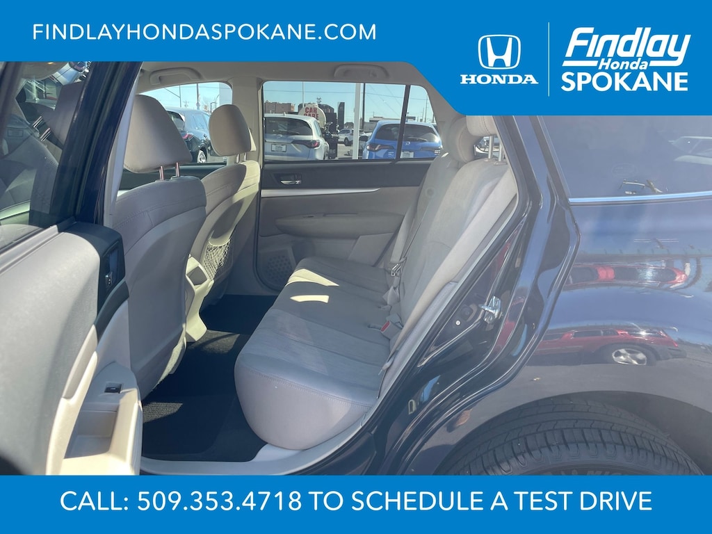 Friends, family, and neighbors have chosen us time and time again to be their dealer. Our simple and easy process, market aggressive pricing, and friendly knowledgeable staff are all reasons why. Come see for yourself why we are the top rated dealer in Spokane. Our process is designed to be easy, give you choices, and save you time. Our pressure free buying process allows you to see the quote you want. We give every customer multiple different monthly payments and down payments all on one sheet, so you can choose the one that best fits your budget. Come see how easy it is to purchase a car, truck, SUV from Findlay Honda Spokane. This Subaru Outback is equipped with these features: All-Weather Package (Heated Exterior Mirrors, Heated Front Seats, and Windshield Wiper De-Icer), 17" x 7.0" Aluminum Alloy w/Silver Finish Wheels, 3.9 Axle Ratio, 4-Wheel Disc Brakes, 6 Speakers, ABS brakes, Air Conditioning, Alloy wheels, AM/FM radio, AM/FM Stereo w/Single-Disc CD Player, Anti-whiplash front head restraints, Auto-Dimming Mirror w/Compass, Brake assist, Bumpers: body-color, CD player, Cloth Upholstery, Driver door bin, Driver vanity mirror, Dual front impact airbags, Dual front side impact airbags, Electronic Stability Control, Four wheel independent suspension, Front anti-roll bar, Front Bucket Seats, Front Center Armrest w/Storage, Front fog lights, Front reading lights, Fully automatic headlights, Illuminated entry, Leather Shift Knob, Low tire pressure warning, Occupant sensing airbag, Outside temperature display, Overhead airbag, Overhead console, Panic alarm, Passenger door bin, Passenger vanity mirror, Power door mirrors, Power driver seat, Power steering, Power windows, Radio data system, Rear anti-roll bar, Rear Bumper Cover, Rear seat center armrest, Rear window defroster, Rear window wiper, Reclining Front Bucket Seats, Remote keyless entry, Roof rack, Security system, Speed control, Speed-sensing steering, Splash Guards, Split folding rear seat, Spoiler, Steering wheel mounted audio controls, Tachometer, Telescoping steering wheel, Tilt steering wheel, Traction control, Trip computer, and Variably intermittent wipers.