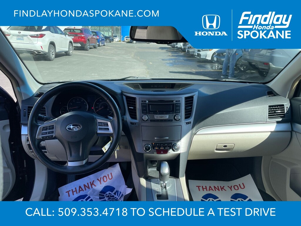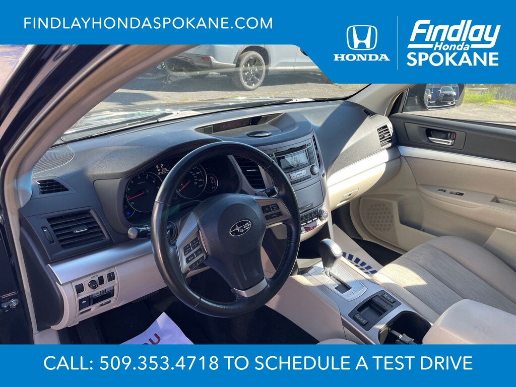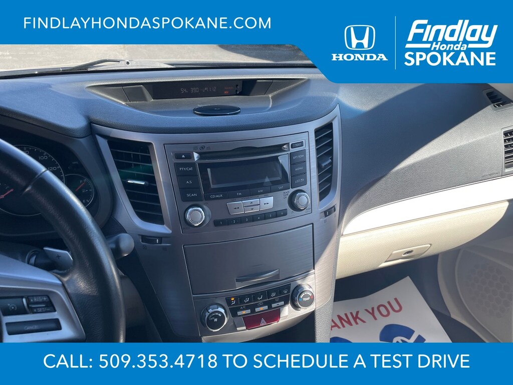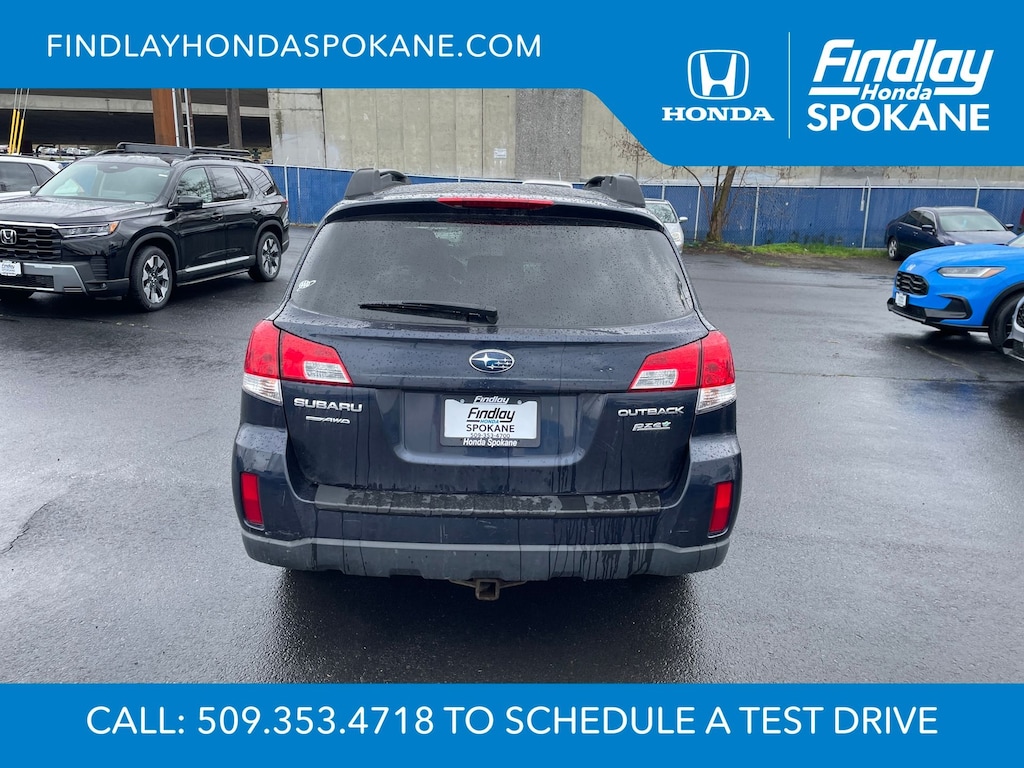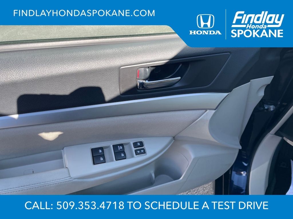 Friends, family, and neighbors have chosen us time and time again to be their dealer. Our simple and easy process, market aggressive pricing, and friendly knowledgeable staff are all reasons why. Come see for yourself why we are the top rated dealer in Spokane. Our process is designed to be easy, give you choices, and save you time. Our pressure free buying process allows you to see the quote you want. We give every customer multiple different monthly payments and down payments all on one sheet, so you can choose the one that best fits your budget. Come see how easy it is to purchase a car, truck, SUV from Findlay Honda Spokane. This Subaru Outback is equipped with these features: All-Weather Package (Heated Exterior Mirrors, Heated Front Seats, and Windshield Wiper De-Icer), 17" x 7.0" Aluminum Alloy w/Silver Finish Wheels, 3.9 Axle Ratio, 4-Wheel Disc Brakes, 6 Speakers, ABS brakes, Air Conditioning, Alloy wheels, AM/FM radio, AM/FM Stereo w/Single-Disc CD Player, Anti-whiplash front head restraints, Auto-Dimming Mirror w/Compass, Brake assist, Bumpers: body-color, CD player, Cloth Upholstery, Driver door bin, Driver vanity mirror, Dual front impact airbags, Dual front side impact airbags, Electronic Stability Control, Four wheel independent suspension, Front anti-roll bar, Front Bucket Seats, Front Center Armrest w/Storage, Front fog lights, Front reading lights, Fully automatic headlights, Illuminated entry, Leather Shift Knob, Low tire pressure warning, Occupant sensing airbag, Outside temperature display, Overhead airbag, Overhead console, Panic alarm, Passenger door bin, Passenger vanity mirror, Power door mirrors, Power driver seat, Power steering, Power windows, Radio data system, Rear anti-roll bar, Rear Bumper Cover, Rear seat center armrest, Rear window defroster, Rear window wiper, Reclining Front Bucket Seats, Remote keyless entry, Roof rack, Security system, Speed control, Speed-sensing steering, Splash Guards, Split folding rear seat, Spoiler, Steering wheel mounted audio controls, Tachometer, Telescoping steering wheel, Tilt steering wheel, Traction control, Trip computer, and Variably intermittent wipers.
