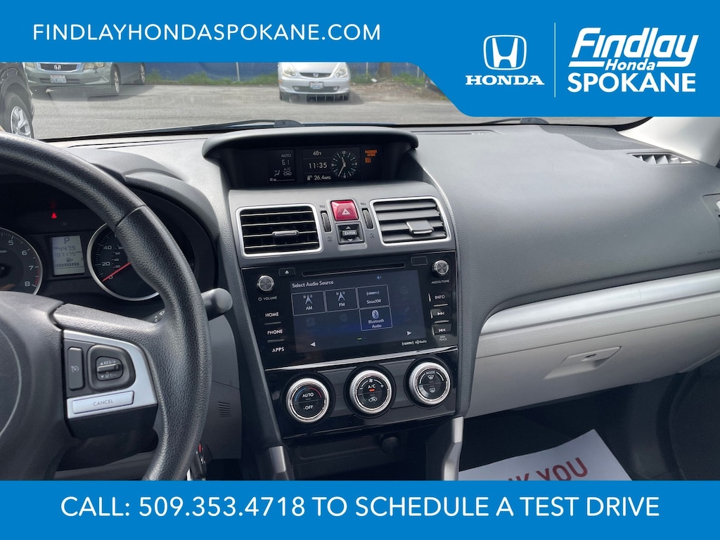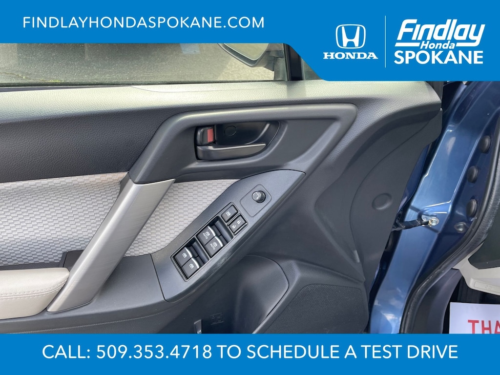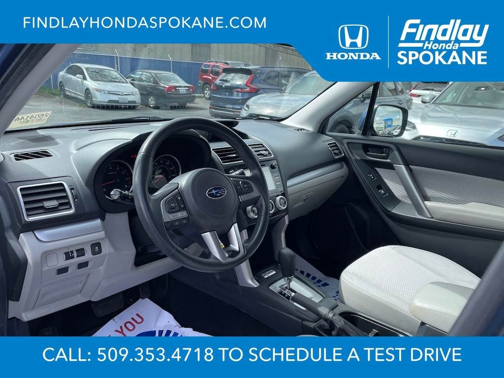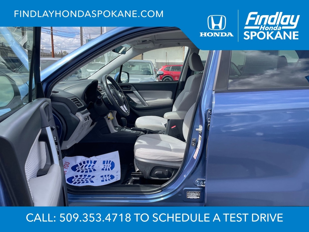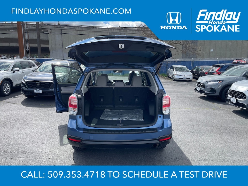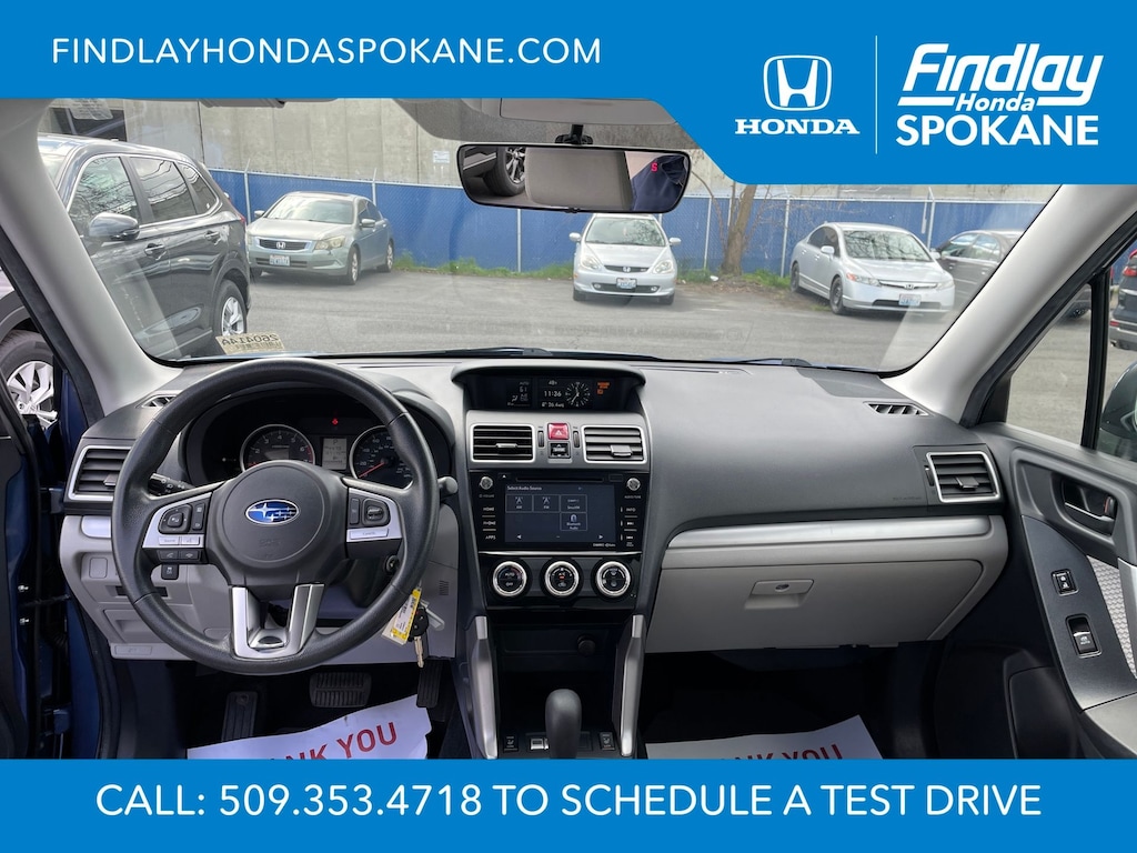 Friends, family, and neighbors have chosen us time and time again to be their dealer. Our simple and easy process, market aggressive pricing, and friendly knowledgeable staff are all reasons why. Come see for yourself why we are the top rated dealer in Spokane. Our process is designed to be easy, give you choices, and save you time. Our pressure free buying process allows you to see the quote you want. We give every customer multiple different monthly payments and down payments all on one sheet, so you can choose the one that best fits your budget. Come see how easy it is to purchase a car, truck, SUV from Findlay Honda Spokane. This Subaru Forester is equipped with these features: All-Weather Package (Heated Exterior Mirrors, Heated Front Seats, and Windshield Wiper De-Icer), Protection Package #1 (All-Weather Floor Mats, Cargo Cover - Manual Rear Gate, Rear Bumper Cover, Rear Seatback Protector, and Splash Guards), 17" Alloy Wheels, 3.70 Axle Ratio, 4-Wheel Disc Brakes, 6 Speakers, ABS brakes, Air Conditioning, Alloy wheels, AM/FM radio: SiriusXM, Auto-Dimming Mirror w/Compass (DISC), Automatic temperature control, Brake assist, Bumpers: body-color, CD player, Cloth Upholstery, Driver door bin, Driver vanity mirror, Driver's Side Mirror, Dual front impact airbags, Dual front side impact airbags, Electronic Stability Control, Emergency communication system: STARLINK, Exterior Auto Dimming Mirror w/Approach Lighting, Exterior Mirror Hardware Kit, Exterior Parking Camera Rear, Four wheel independent suspension, Front anti-roll bar, Front Bucket Seats, Front Center Armrest, Front reading lights, Illuminated entry, Int & Ext Auto Dim Mirror w/Approach Light (DISC), Knee airbag, Low tire pressure warning, Occupant sensing airbag, Outside temperature display, Overhead airbag, Overhead console, Panic alarm, Passenger door bin, Passenger vanity mirror, Passenger's Side Mirror, Power door mirrors, Power driver seat, Power moonroof, Power steering, Power windows, Radio data system, Radio: Subaru Starlink 7.0" Multimedia Plus System, Rear anti-roll bar, Rear seat center armrest, Rear window defroster, Rear window wiper, Remote keyless entry, Roof rack: rails only, Security system, Speed control, Split folding rear seat, Spoiler, Steering wheel mounted audio controls, Tachometer, Telescoping steering wheel, Tilt steering wheel, Traction control, Trip computer, and Variably intermittent wipers.