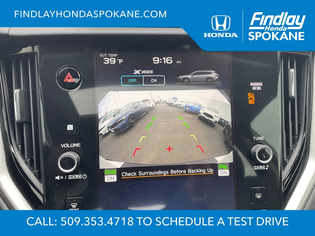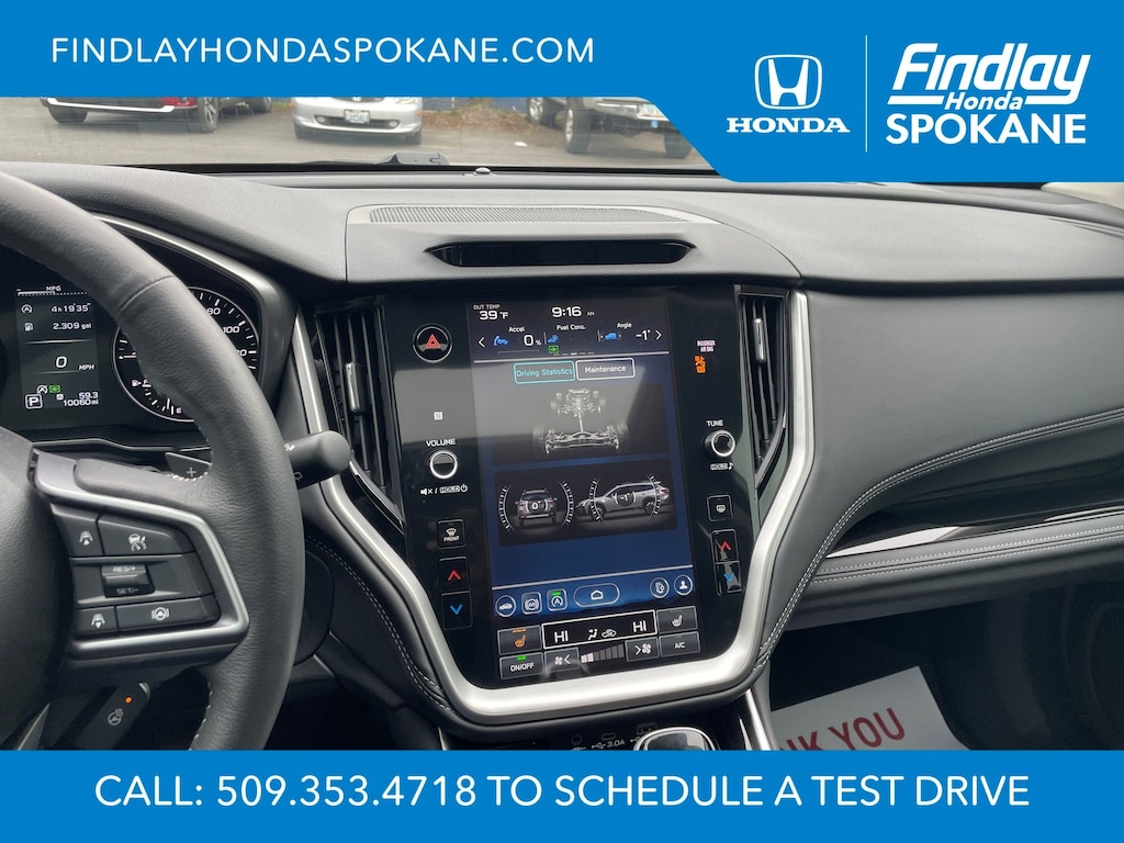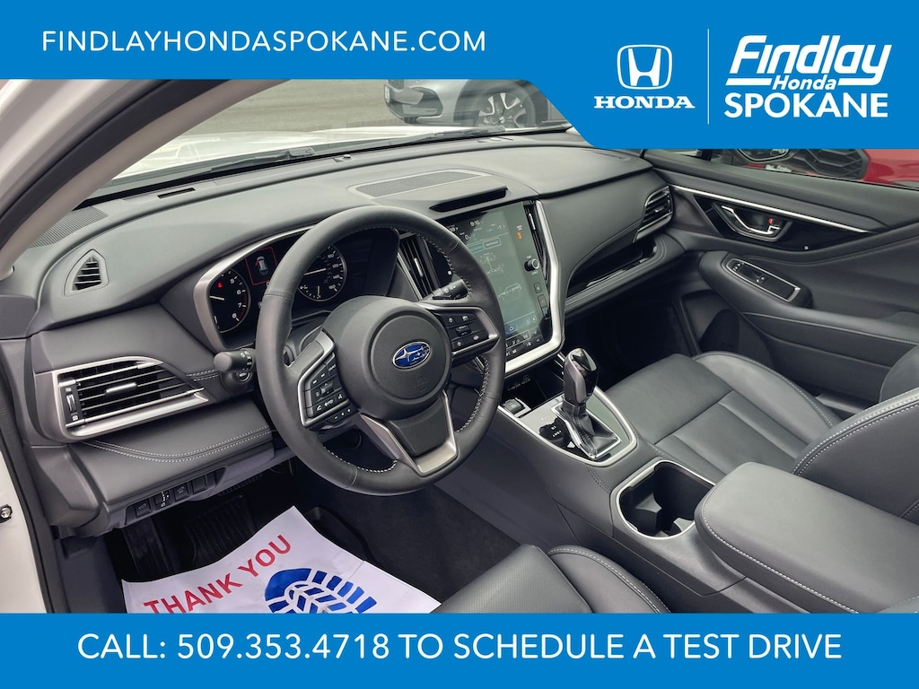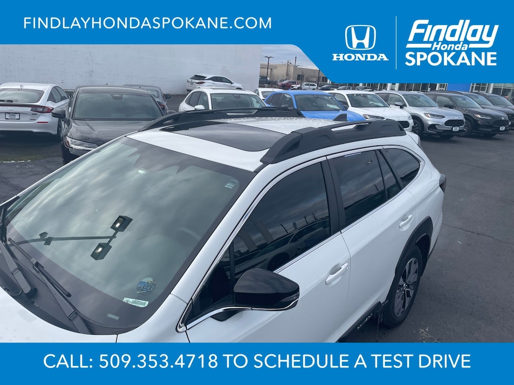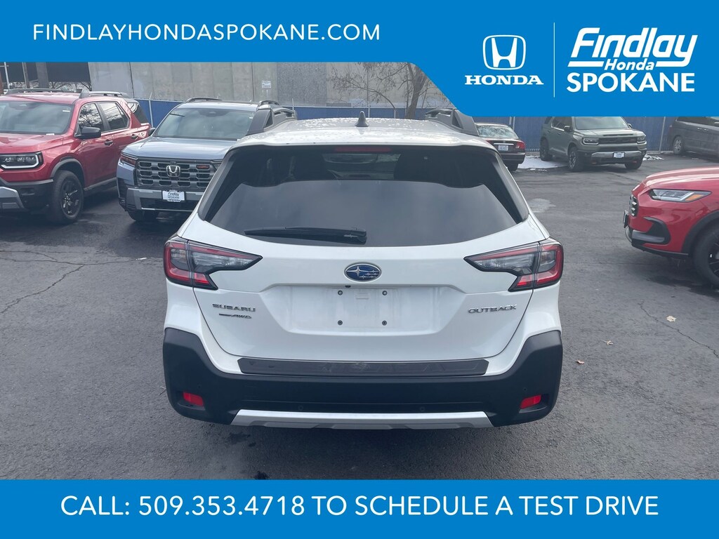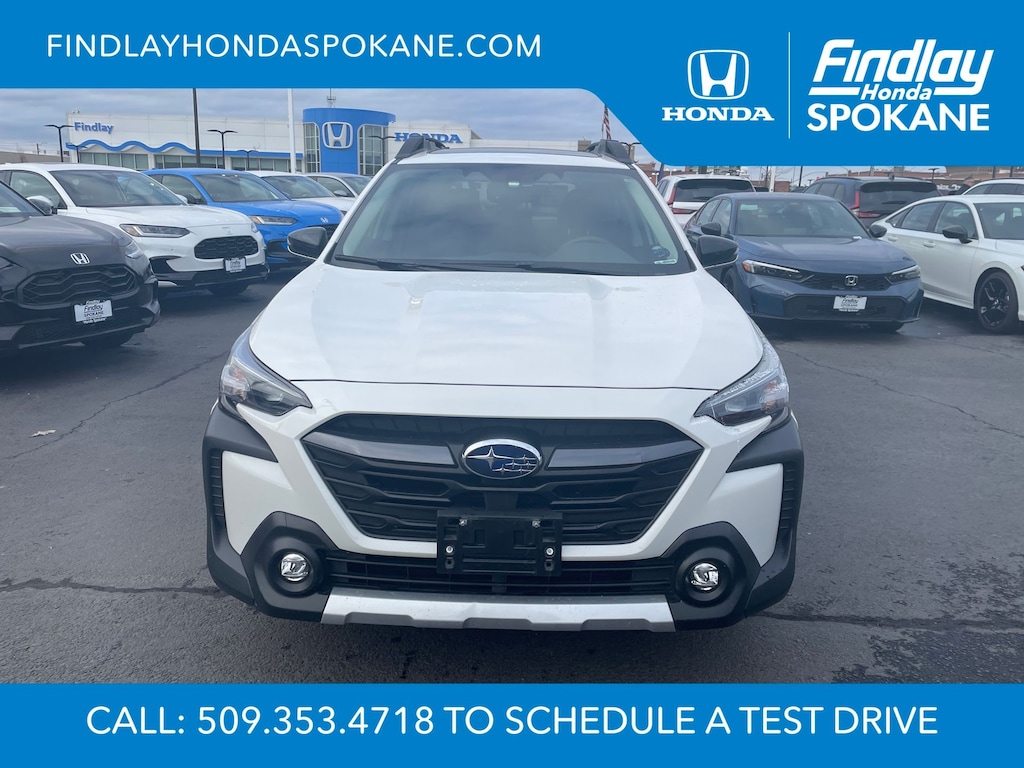 Friends, family, and neighbors have chosen us time and time again to be their dealer. Our simple and easy process, market aggressive pricing, and friendly knowledgeable staff are all reasons why. Come see for yourself why we are the top rated dealer in Spokane. Our process is designed to be easy, give you choices, and save you time. Our pressure free buying process allows you to see the quote you want. We give every customer multiple different monthly payments and down payments all on one sheet, so you can choose the one that best fits your budget. Come see how easy it is to purchase a car, truck, SUV from Findlay Honda Spokane. This Subaru Outback is equipped with these features: Popular Package #2 (All-Weather Floor Liners, Auto-Dimming Exterior Mirror w/Approach Light, LED Upgrade, Rear Bumper Cover, Rear Seat Back Protector, and Splash Guards), Standard Model, 12 Speakers, 4-Wheel Disc Brakes, ABS brakes, Air Conditioning, Alloy wheels, AM/FM radio: SiriusXM with 360L, Apple CarPlay & Android Auto, Auto High-beam Headlights, Auto-dimming Rear-View mirror, Automatic temperature control, Brake assist, Bumpers: body-color, Compass, Driver door bin, Driver vanity mirror, Dual front impact airbags, Dual front side impact airbags, Electronic Stability Control, Emergency communication system: MySubaru Safety (3-year free trial), Exterior Parking Camera Rear, Four wheel independent suspension, Front anti-roll bar, Front Bucket Seats, Front Center Armrest w/Storage, Front dual zone A/C, Front fog lights, Front reading lights, Fully automatic headlights, Garage door transmitter: HomeLink, harman/kardon® Speakers, Heated door mirrors, Heated Front Bucket Seats, Heated front seats, Heated rear seats, Heated steering wheel, HVAC memory, Illuminated entry, Knee airbag, Leather Shift Knob, Leather steering wheel, Low tire pressure warning, Memory seat, Navigation system: TomTom Navigation w/what3words, Occupant sensing airbag, Outside temperature display, Overhead airbag, Overhead console, Panic alarm, Passenger door bin, Passenger vanity mirror, Perforated Leather-Trimmed Upholstery, Power door mirrors, Power driver seat, Power Liftgate, Power moonroof, Power passenger seat, Power steering, Power windows, Radio: Subaru 11.6" Multimedia System w/Navigation, Rear anti-roll bar, Rear seat center armrest, Rear window defroster, Rear window wiper, Remote keyless entry, Roof rack, Security system, Speed control, Speed-sensing steering, Split folding rear seat, Spoiler, Steering wheel mounted audio controls, Tachometer, Telescoping steering wheel, Tilt steering wheel, Traction control, Trip computer, Turn signal indicator mirrors, Variably intermittent wipers, and Wheels: 18" x 7J Black Aluminum-Alloy.