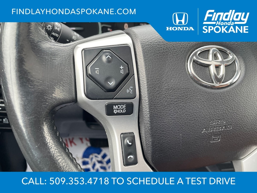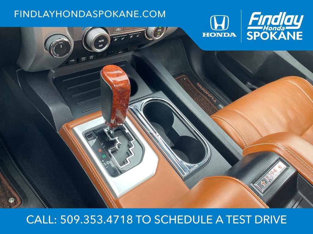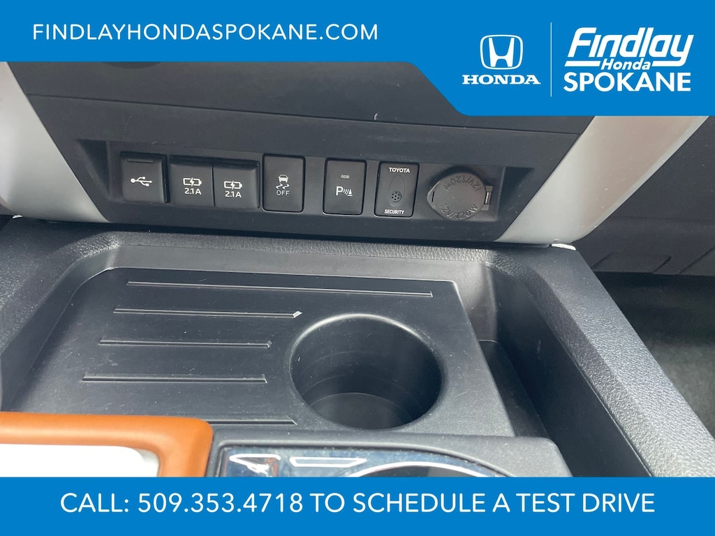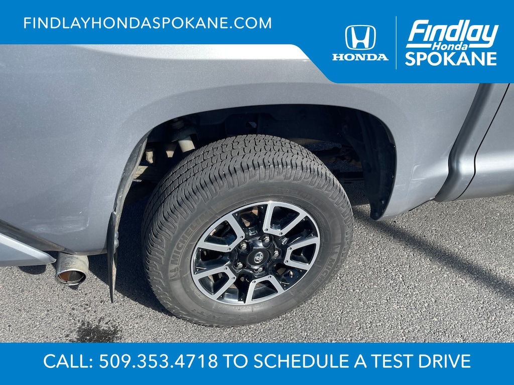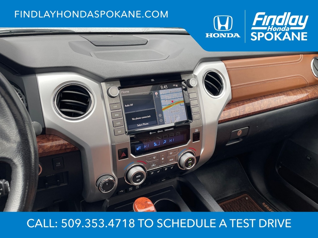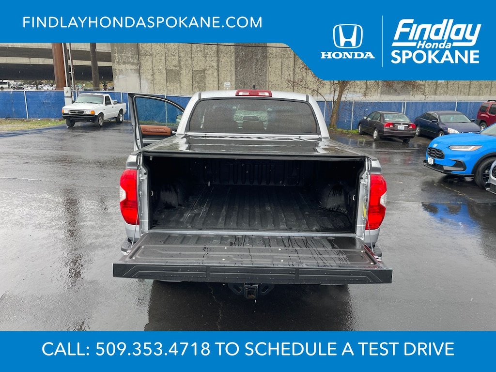 Friends, family, and neighbors have chosen us time and time again to be their dealer. Our simple and easy process, market aggressive pricing, and friendly knowledgeable staff are all reasons why. Come see for yourself why we are the top rated dealer in Spokane. Our process is designed to be easy, give you choices, and save you time. Our pressure free buying process allows you to see the quote you want. We give every customer multiple different monthly payments and down payments all on one sheet, so you can choose the one that best fits your budget. Come see how easy it is to purchase a car, truck, SUV from Findlay Honda Spokane. This Toyota Tundra is equipped with these features: 1794 Grade Package, TRD Off-Road Package (Bedside TRD Off Road Decal, LED Fog Lights, LED Headlights w/Black Sport Trim, Trail-Tuned Bilstein Shock Absorbers, and Wheels: 18" Split 5-Spoke TRD Off Road Alloy), Western Grade Package, 12 Speakers, 4-Wheel Disc Brakes, 4.30 Axle Ratio, ABS brakes, Air Conditioning, Alloy wheels, AM/FM radio: SiriusXM, Apple CarPlay/Android Auto, Auto High-beam Headlights, Auto-dimming door mirrors, Auto-dimming Rear-View mirror, Automatic temperature control, Brake assist, Compass, Delay-off headlights, Driver door bin, Driver vanity mirror, Dual front impact airbags, Dual front side impact airbags, Electronic Stability Control, Emergency communication system: Safety Connect with 1-year trial, Exterior Parking Camera Rear, Front anti-roll bar, Front Bucket Seats, Front Center Armrest, Front dual zone A/C, Front fog lights, Front reading lights, Front wheel independent suspension, Fully automatic headlights, Garage door transmitter: HomeLink, Heated & Ventilated Front Bucket Seats, Heated door mirrors, Heated front seats, Illuminated entry, Knee airbag, Leather Seat Trim (LD), Leather steering wheel, Low tire pressure warning, Memory seat, Navigation system: Dynamic Navigation (3-year trial), Occupant sensing airbag, Outside temperature display, Overhead airbag, Overhead console, Panic alarm, Passenger door bin, Passenger vanity mirror, Power door mirrors, Power driver seat, Power passenger seat, Power steering, Power Tilt & Slide Moonroof w/Sliding Sunshade, Power windows, Preferred Owners Portfolio (TMS), Radio data system, Radio: Premium JBL Audio w/Dynamic Navigation, Rear reading lights, Rear seat center armrest, Rear step bumper, Rear window defroster, Remote Connect, Remote keyless entry, Safety Connect, Security system, Service Connect, SiriusXM Radio, Speed control, Speed-sensing steering, Split folding rear seat, Steering wheel memory, Steering wheel mounted audio controls, Tachometer, Telescoping steering wheel, Tilt steering wheel, Traction control, Trip computer, Turn signal indicator mirrors, Variably intermittent wipers, Ventilated front seats, Voltmeter, and Wheels: 20" 6-Spoke Alloy w/Accented Spokes.